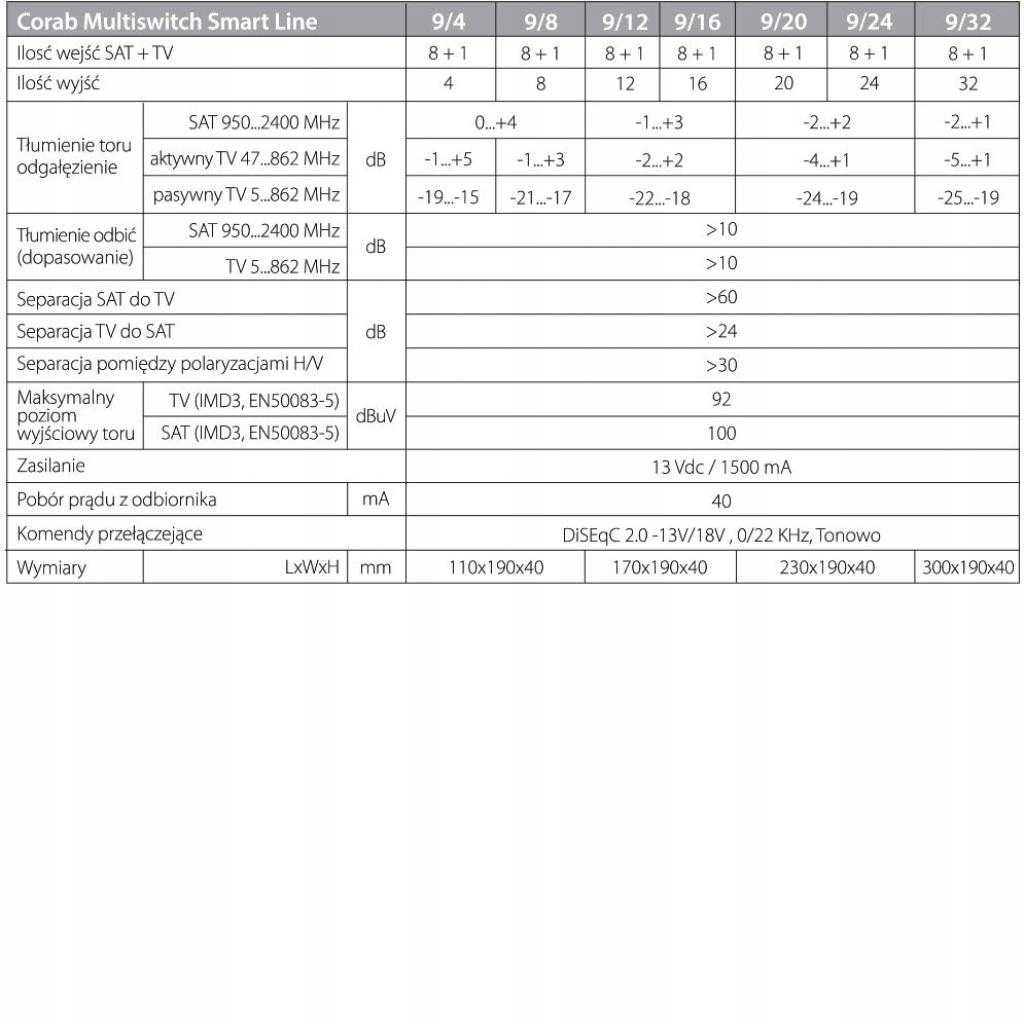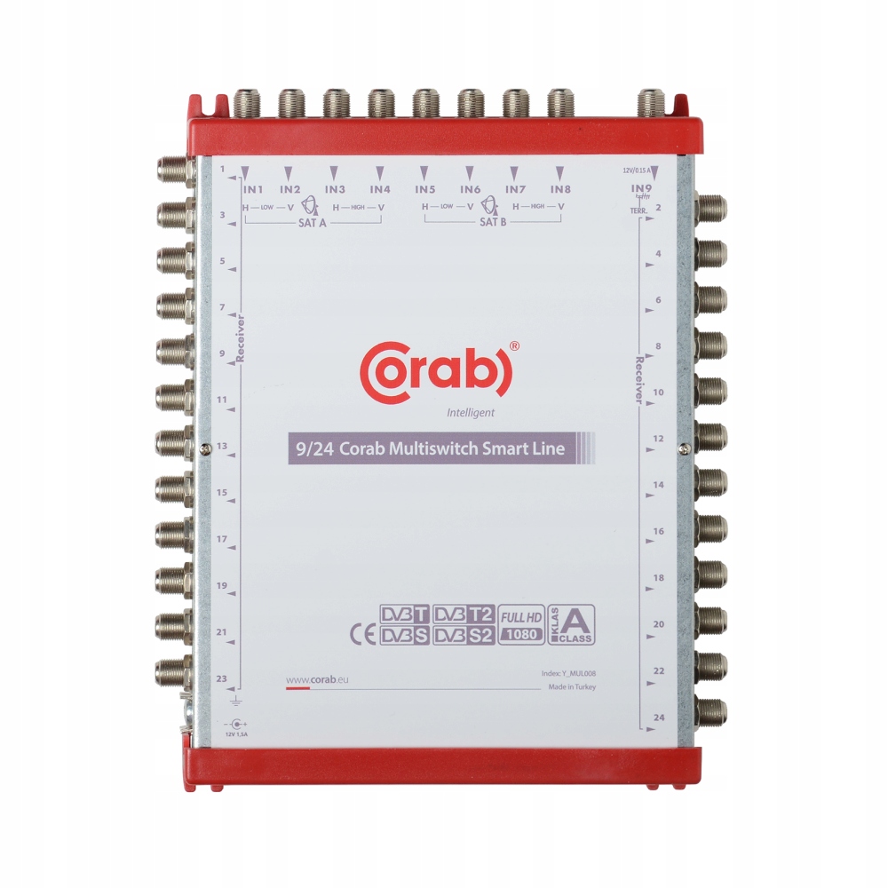 CORAB MULTISWITCH SMART LINE — устройство, используемое для разделения телевизионного сигнала, имеет 9 входов: 8 спутниковых и 1 наземный, а также 24 спутниковых и наземных выхода.