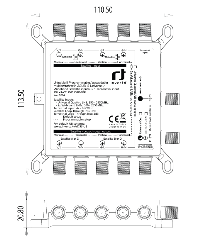Multiswitch Inverto Unicable SAT + DVB-T2 Wideband