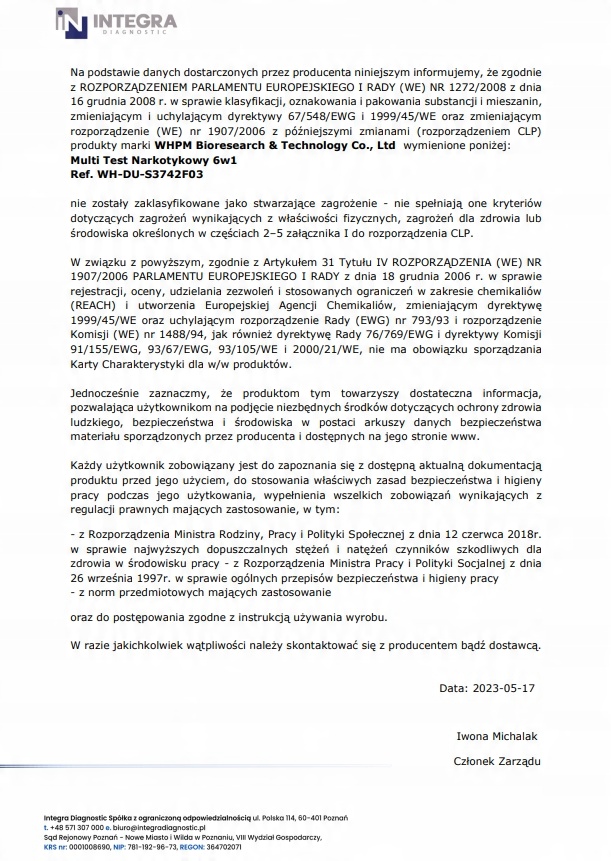 MultiTest Narkotykowy z moczu - 6 parametrów