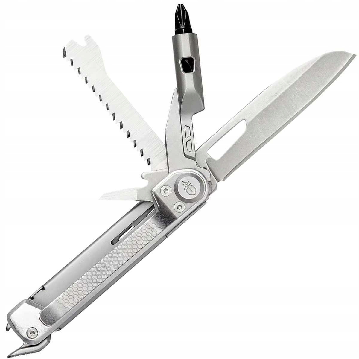 Карманный 7-функциональный мультитул в виде складного карманного ножа. Инструменты изготовлены из нержавеющей стали 5Cr15MoV, накладки рукоятки — из алюминия.