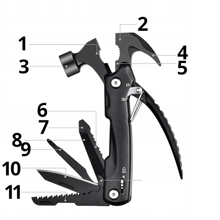 Представленная Multitool - это модель последнего поколения, оснащенная двумя ключевыми инструментами, которые отсутствуют в других моделях. Конечно, речь идет о молотке и ломах для удаления ногтей. Оба инструмента очень прочные и чрезвычайно практичны во многих ситуациях. Если вы не используете их в кемпинге, они, безусловно, будут полезны, когда в вашей семье в вашей семье!