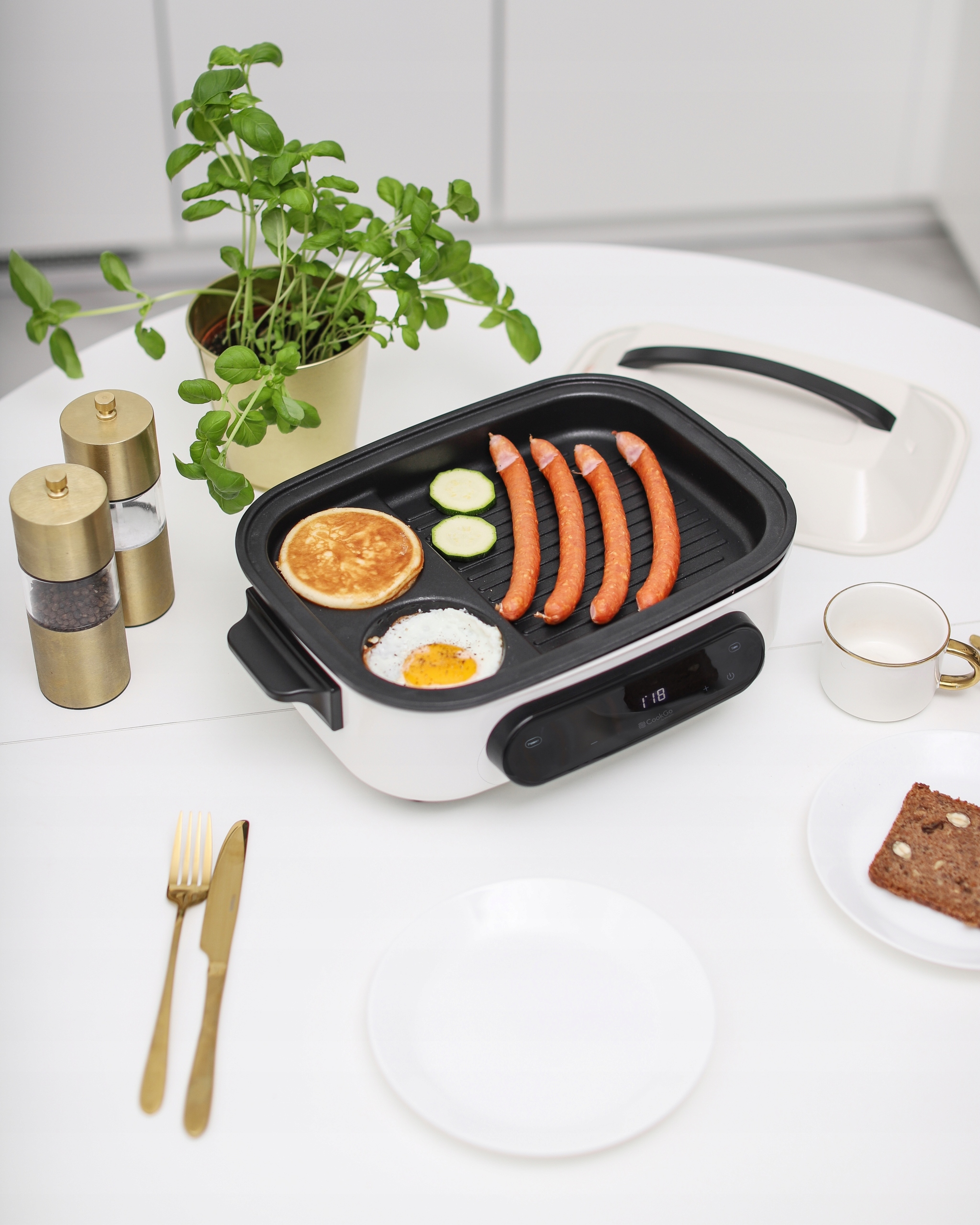 Благодаря CookGo вы можете приготовить самые разные блюда на завтрак. b>, обед, ужин или перекус. Идеально подходит для гриля овощей, мяса и рыбы. Вы также можете пожарить вкусные блины, приготовить яичницу или омлет. Вы также можете готовить соусы и супы, используя глубокую тарелку.
