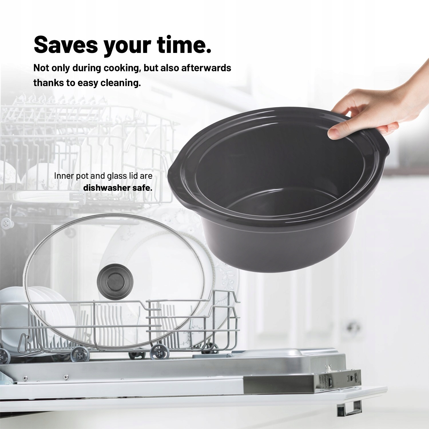 При приготовлении пищи безопасность превыше всего. Технология Cool Touch гарантирует, что вы никогда не обожжетесь о внешнее покрытие кастрюли, даже во время приготовления. Вы наверняка оцените кастрюлю, потому что ее легко чистить. Внутренний контейнер и крышку из закаленного стекла можно мыть в посудомоечной машине. Горшок также компактен, поэтому его можно взять с собой на дачу. Даже дома он не поставит вас в неловкое положение благодаря современному минималистичному дизайну.