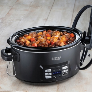 Мультиварка Russell Hobbs, емкость 6,5л, съемная керамическая кастрюля, регулировка температуры, многофункциональное устройство, интеллектуальный датчик температуры, мощность 350 Вт, матовый черный, Мультиварка 25630-56