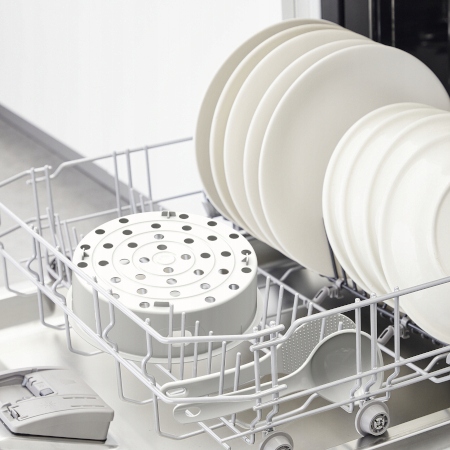 Мультиварка имеет съемную внутреннюю крышку и кастрюлю, а также аксессуары. его можно мыть в посудомоечной машине.