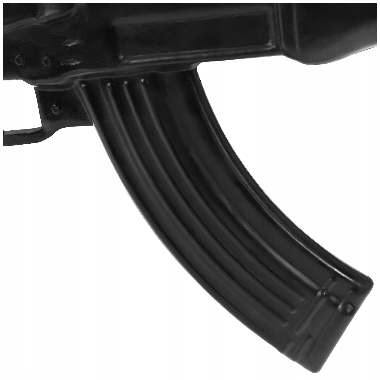 Манекен представляет собой воспроизведение самой известной винтовки в мире. мир, созданный Михаилом Калашниковым. Подсчитано, что оригинал популярного «Калача» был выпущен тиражом в несколько десятков миллионов экземпляров, что ставит его на первое место в списке бесспорных лидеров. АК47 был основной техникой армии Советского Союза стран, входящих в Варшавский договор (кроме Чехословакии). Чрезвычайно популярен на Ближнем Востоке, в Китае и Северной Корее. Выпускается по лицензии, существует множество разновидностей и версий, в том числе финских и израильских.