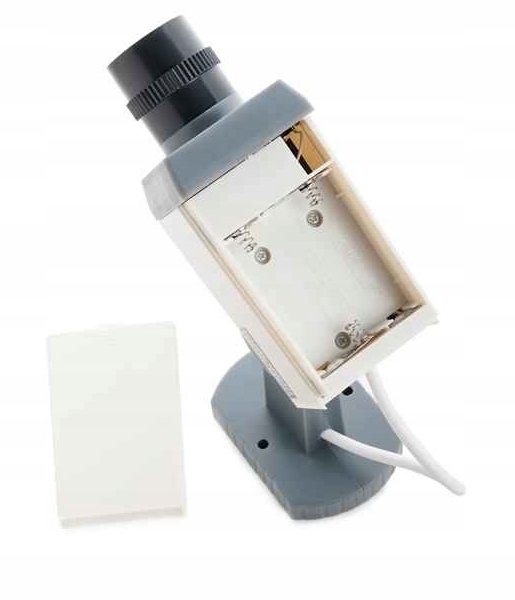 Кроме того, загорается пульсирующий красный светодиод. на. Это создает впечатление, что на территории имеется система наблюдения и отпугивает потенциальных злоумышленников. Этот манекен часто используется на участках, частных объектах или магазинах. Питание осуществляется от трёх батареек напряжением 1,5 В.