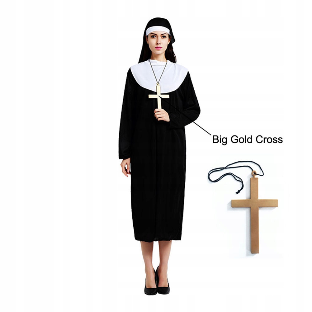 - Набор - содержит длинное черное платье, головной убор и большой золотой крест, сделанный из легкого полиэстера премиум -класса.