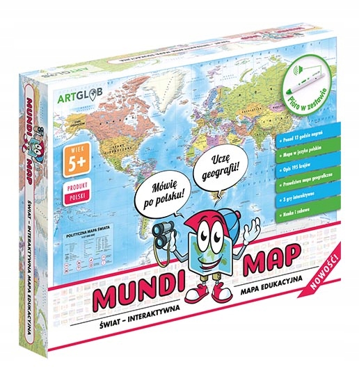 MundiMap ARTGLOB Інтерактивна навчальна карта світу для дітей з ігровою ручкою