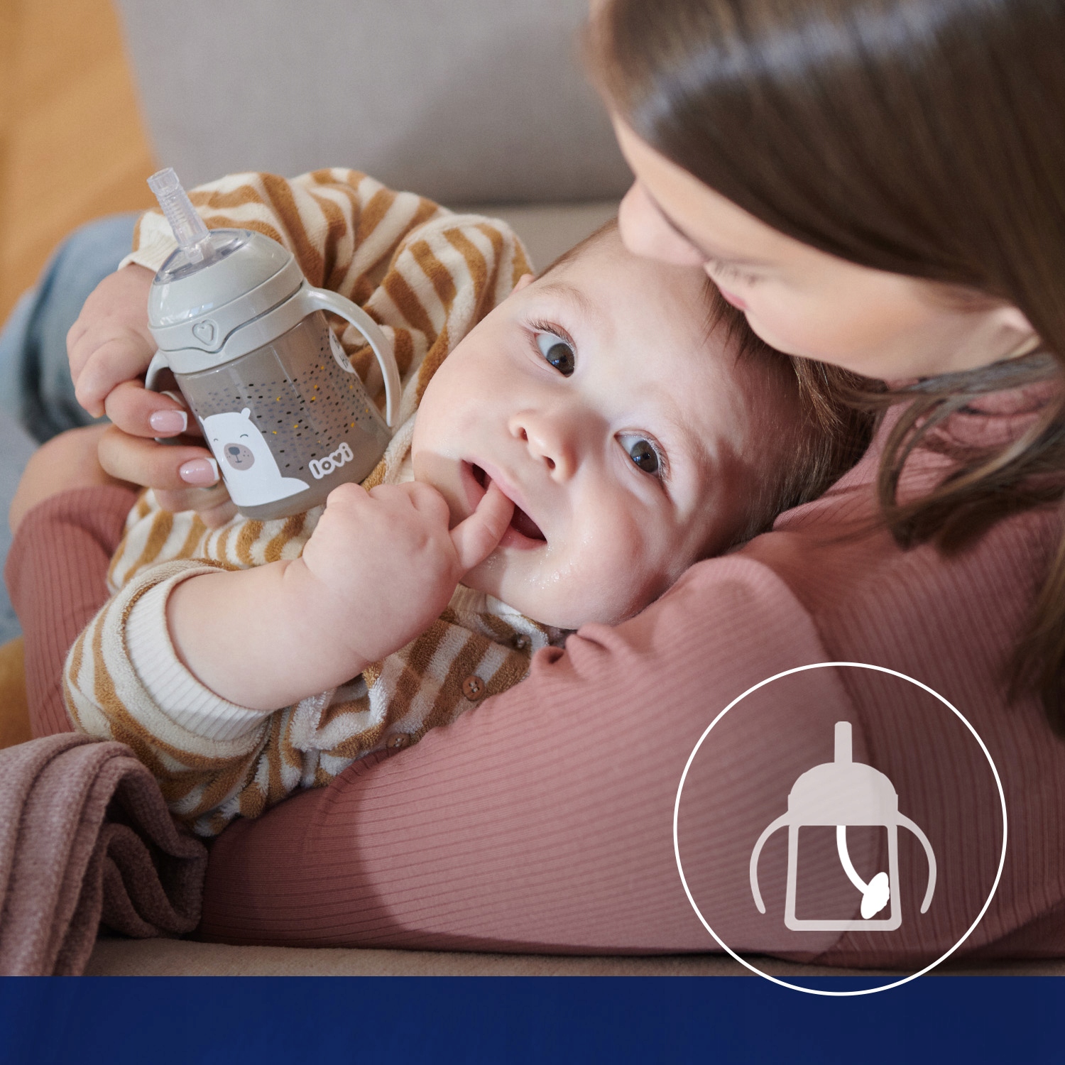 Мундштук и соломинка с грузиком для первой бежевой чашки LOVI