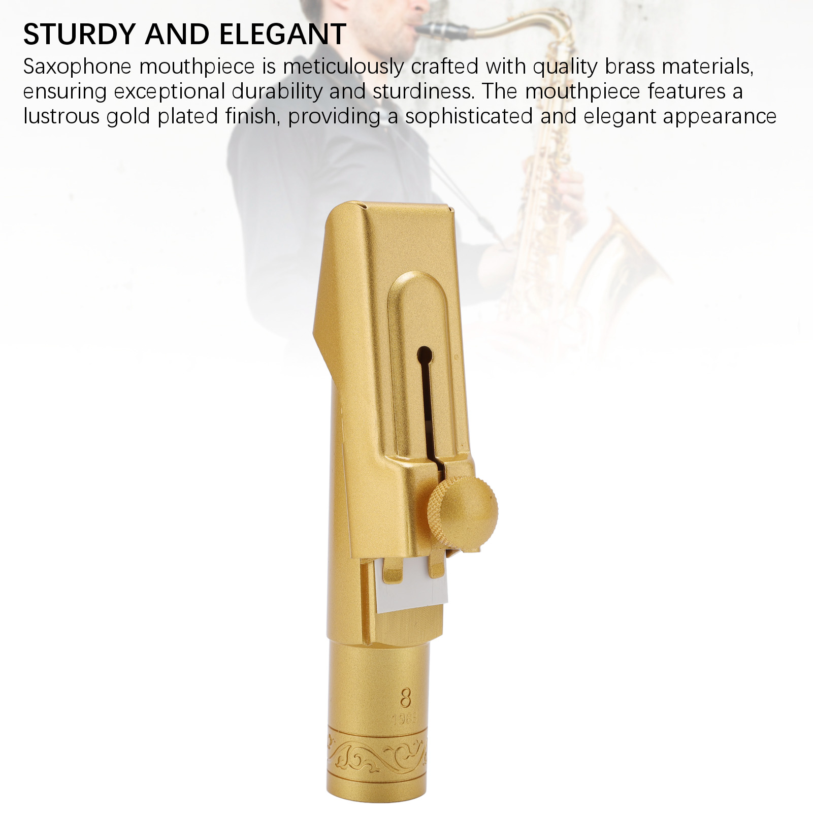 1. Прочный и элегантный мундштук саксофона тщательно изготовлен из высококачественной латуни, что обеспечивает исключительную долговечность и прочность. Мундштук имеет блестящую золотую отделку, что придает ему изысканный и элегантный вид