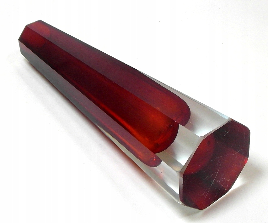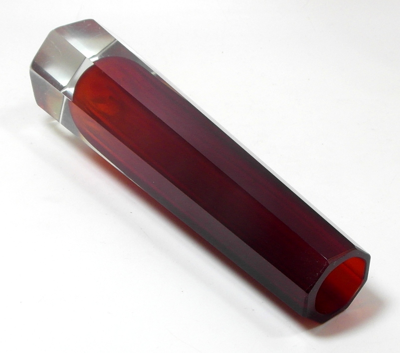 Красивая, старинная ваза из цветного стекла, гладкая резка.