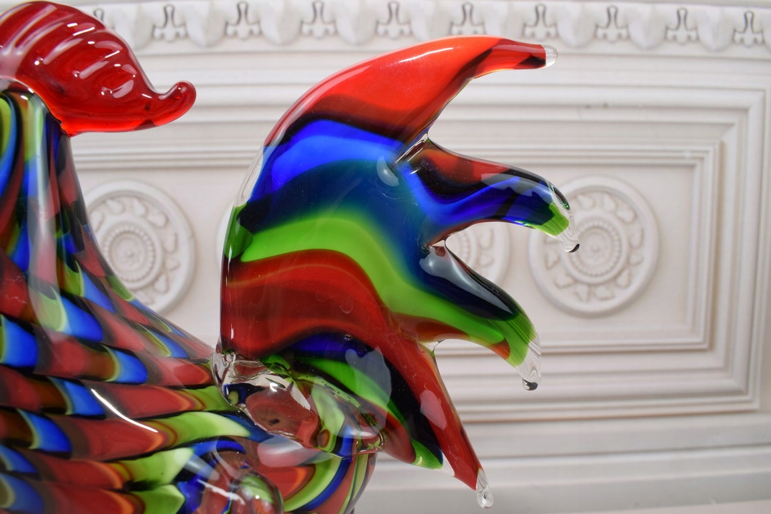 Муранское стекло - Разноцветный петух-цыплёнок - Фигурная скульптура