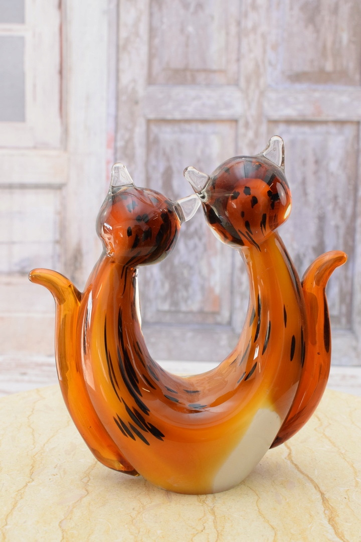 Муранське скло - два помаранчевих кошеняти, коти, кішки - скляна фігурка