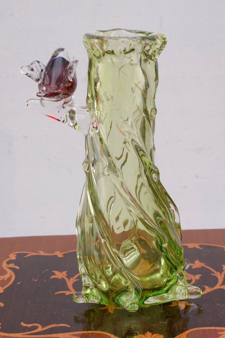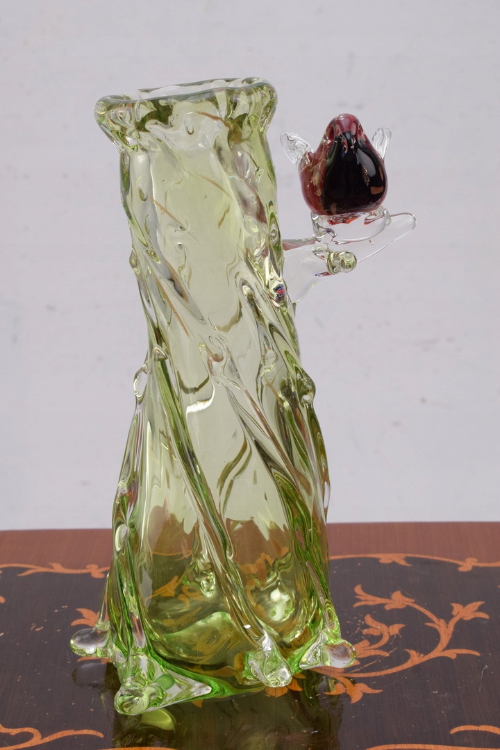 Муранське скло, барвиста ваза з птахами на гілці