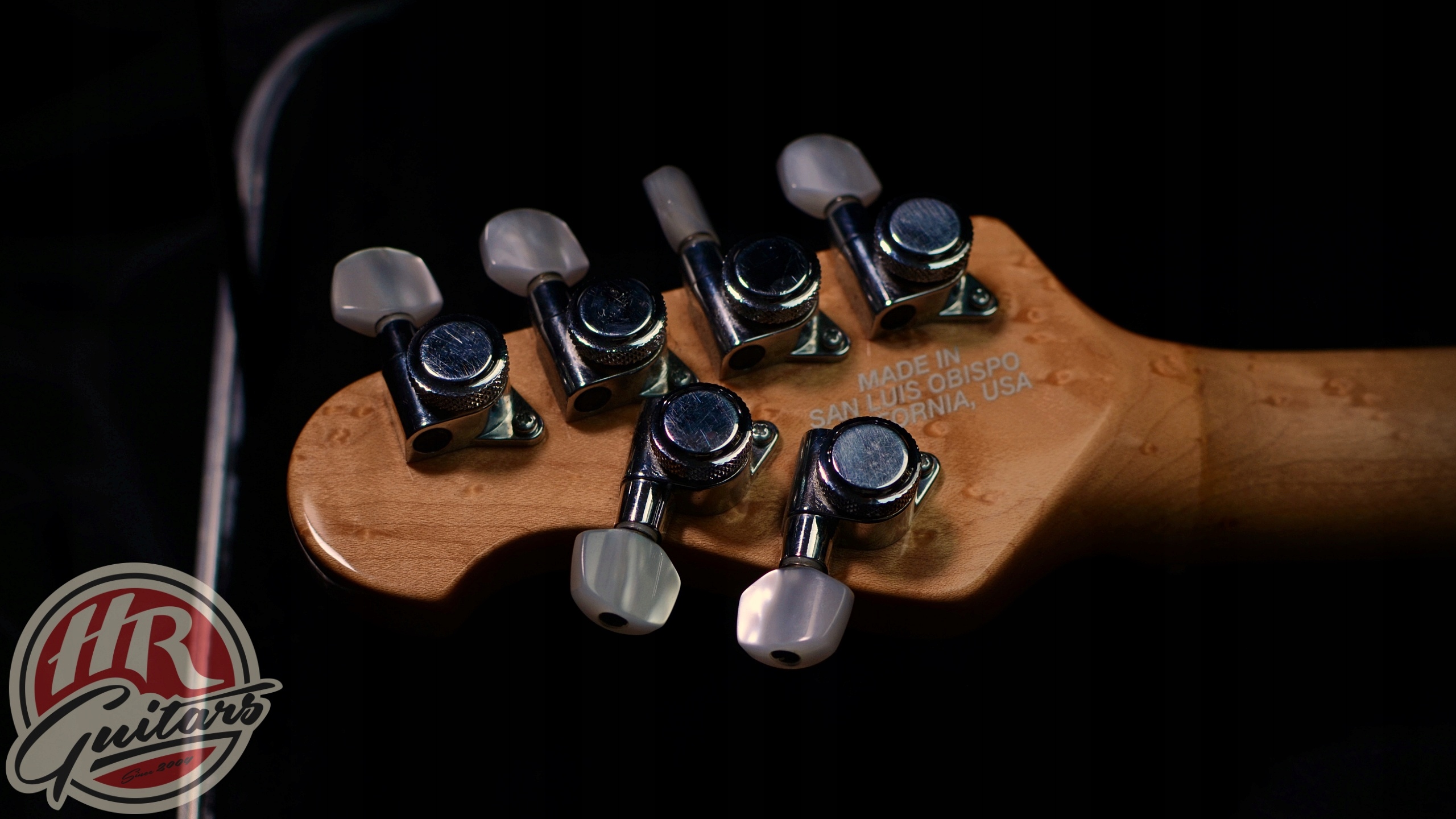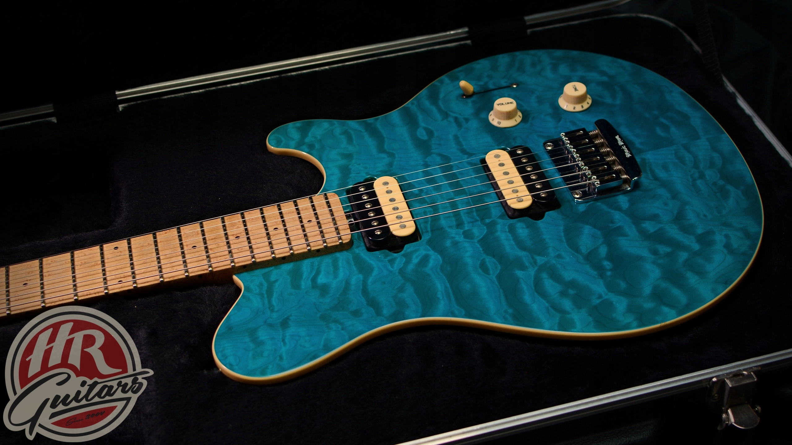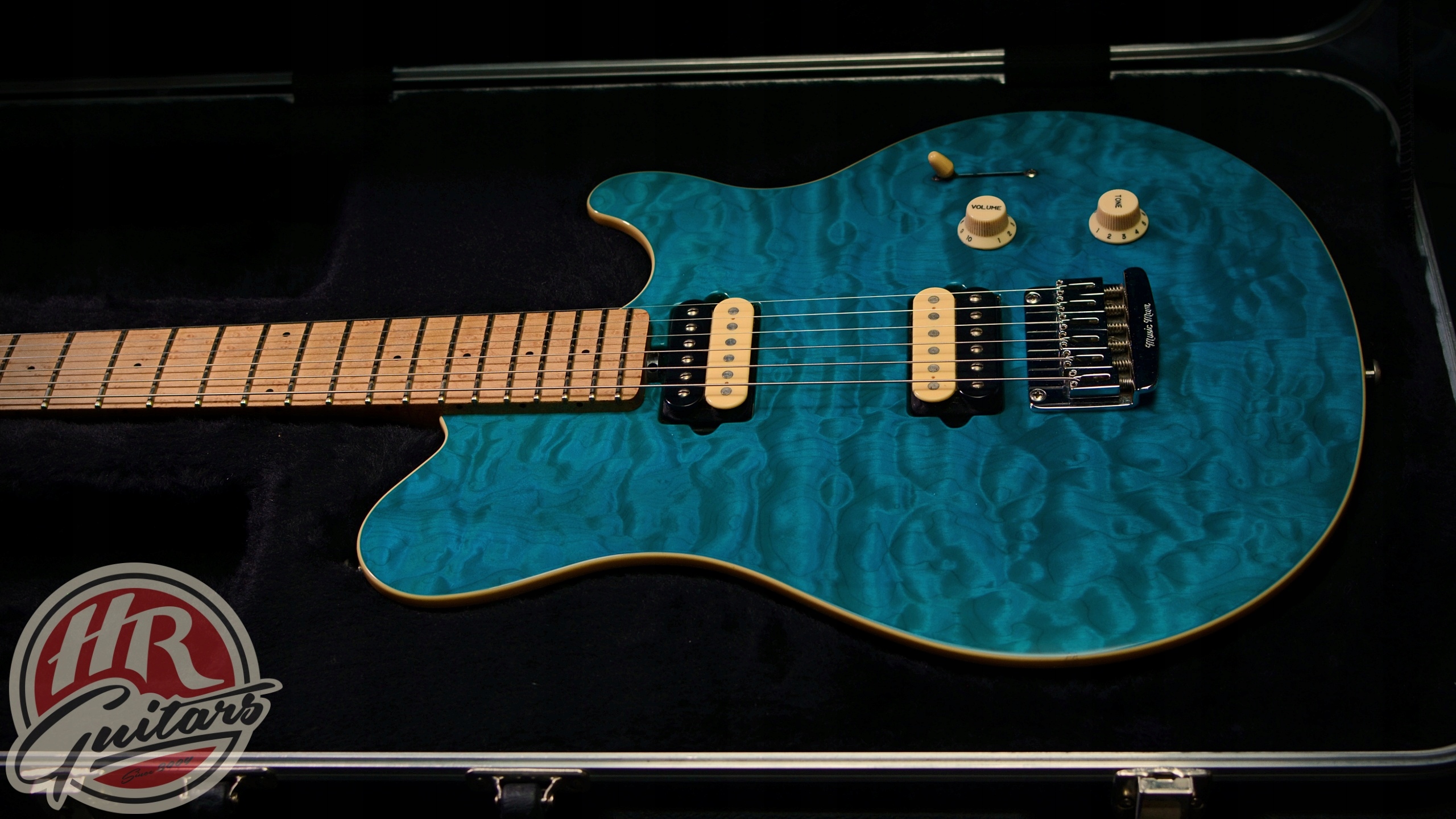 Красивая музыкальная ось супер спортивная хардтейл в цвете полупрозрачного синего цвета с красивым узорным топом и телом в цвете тела. Гитарный год - 2000, США, производство. Гитара в хорошем состоянии. Тело сделано из линден с узорчатой кленовой топом, гриффин - красивая птичья мотылька, слегка заштрихованная лутником. Оригинальные пикапы Dimarzio, пятипозиционный переключатель. Мост зафиксирован, Шаллер заблокировал клавиши, Schaller D-Tuner установлен на строке E6. Оригинальный случай Music Man Axis включен, но это не оригинальный случай с этой гитары. Фантастический инструмент, я рекомендую и приглашаю вас на тесты