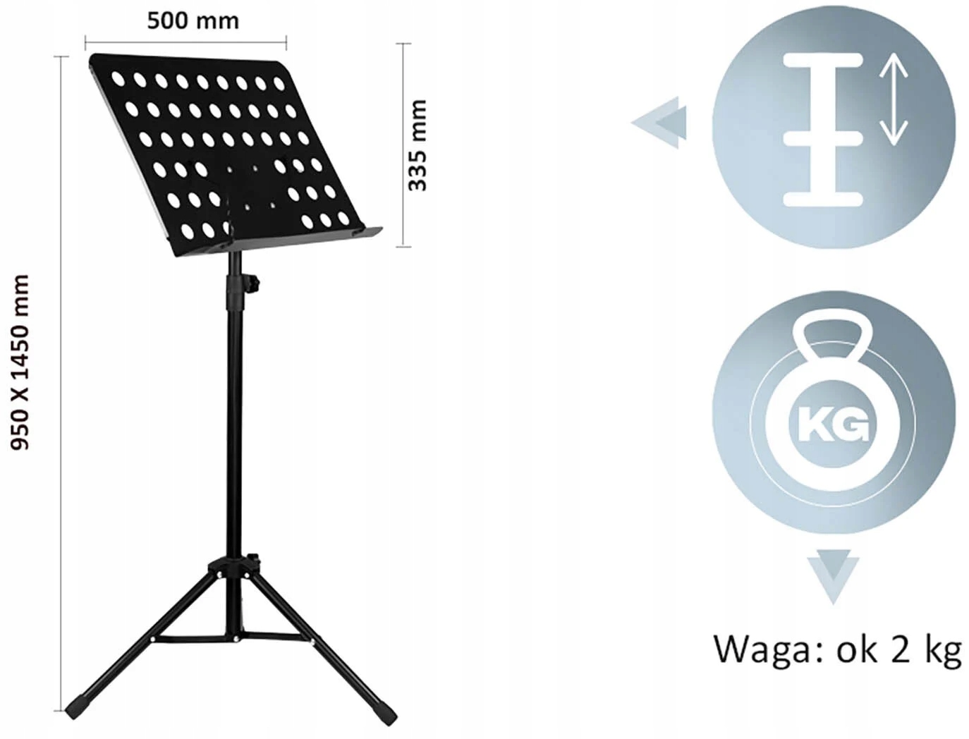 ⭐ Этот пюпитр изготовлен из прочной стали, что гарантирует его стабильность и долговечность. Широкое трехногое основание и возможность быстрого складывания и раскладывания делают его чрезвычайно практичным. Кроме того, элегантный дизайн позволяет ему отлично смотреться на любой сцене.