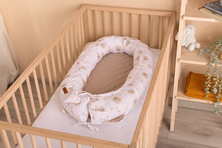 Основа кокона представляет собой съемный матрас, который с одной стороны покрыт муслиновой тканью, а с другой - нежным хлопком. прекрасный принт. Благодаря этому можно адаптировать сторону матраса к меняющимся потребностям ребенка и условиям окружающей среды.