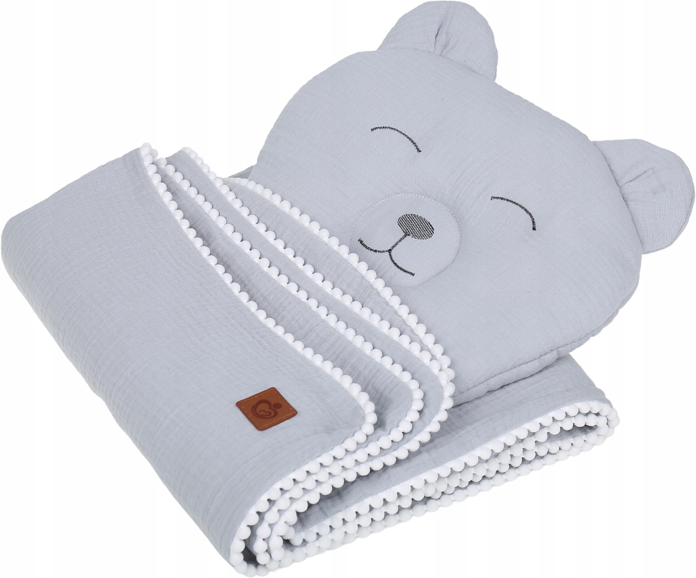 < б>Одеяло муслиновое с подушкой в виде мишки – идеальный выбор для каждого малыша. Он изготовлен из качественного, мягкого и дышащего муслина, который не раздражает нежную кожу ребенка. Он украшен красивыми помпонами, придающими ему шарм и элегантность. Его легкая и воздушная структура обеспечивает оптимальную вентиляцию тела, что позволяет поддерживать оптимальную температуру во время сна и активности ребенка.