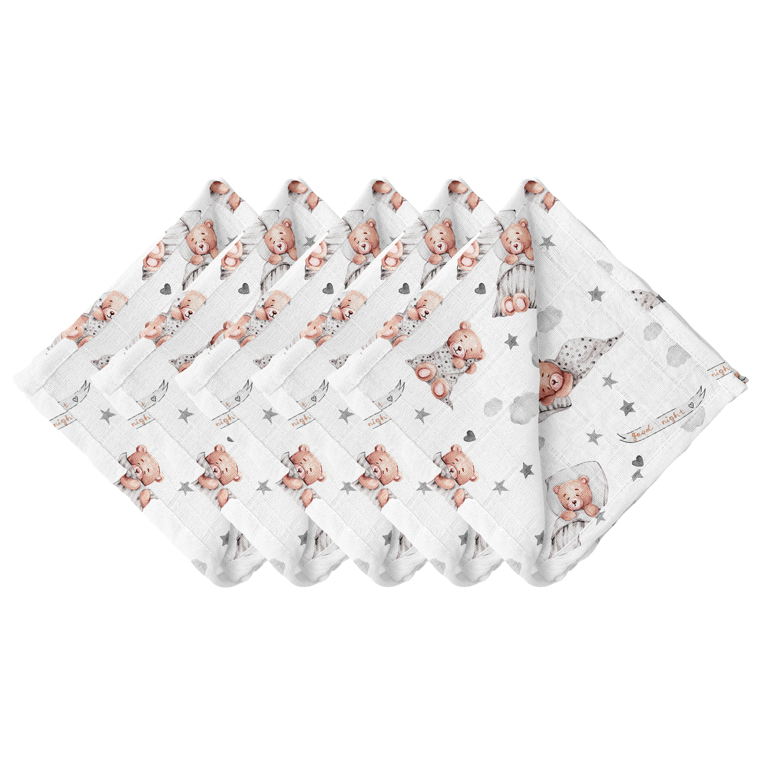 Набор из 5 мягких муслиновых полотенец — универсальный аксессуар, который будет использоваться во многих повседневных ситуациях. Их можно использовать в качестве полотенца для вытирания рук или лица, банного полотенца, нагрудника или мягкой игрушки.