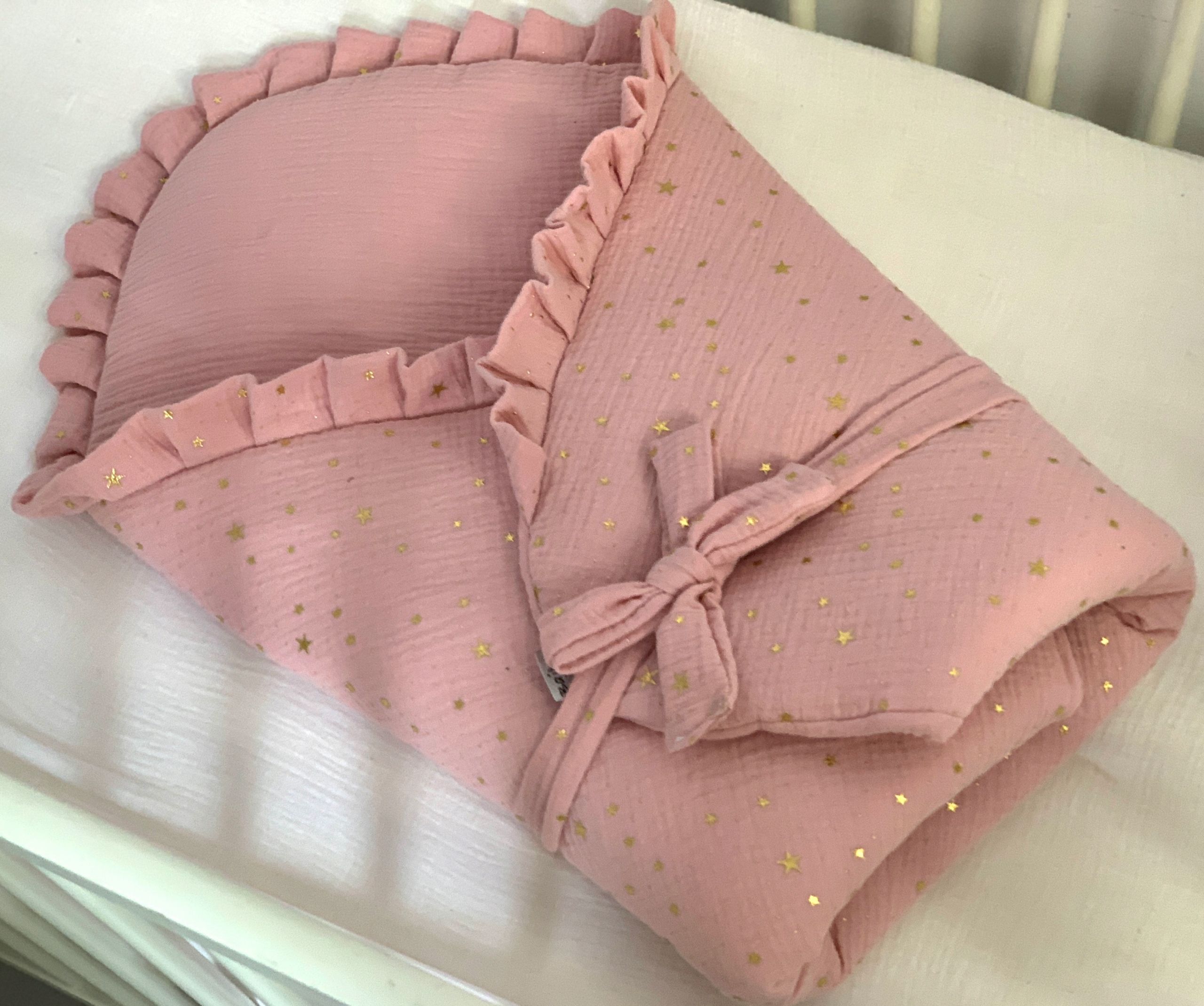мягкий и воздушный - муслиновый рог с печатным сказочным рисунком! Он имеет красивое обочивание. (Введите выбранную опцию заполнения в комментариях. В отсутствие выбора мы отправляем универсальный)