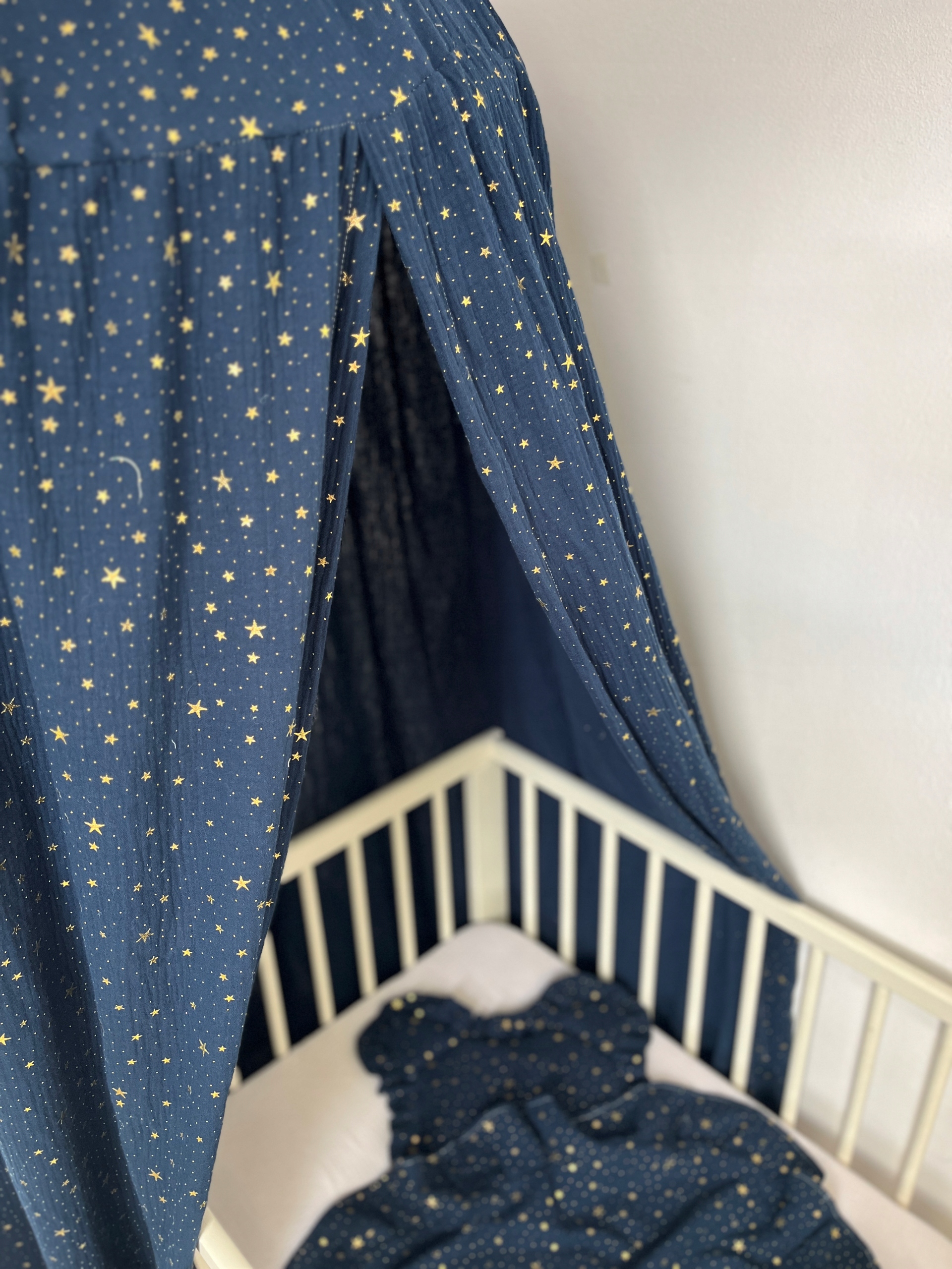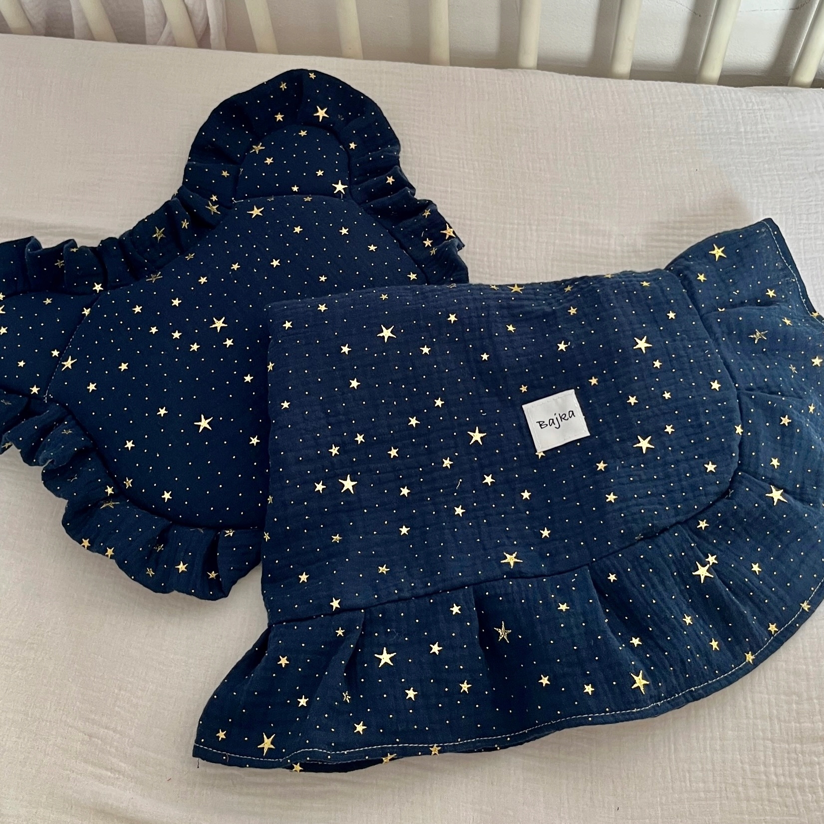 Муслиновый рог с печатным рисунком с оборчительными - сливочные золотые звезды h1>
