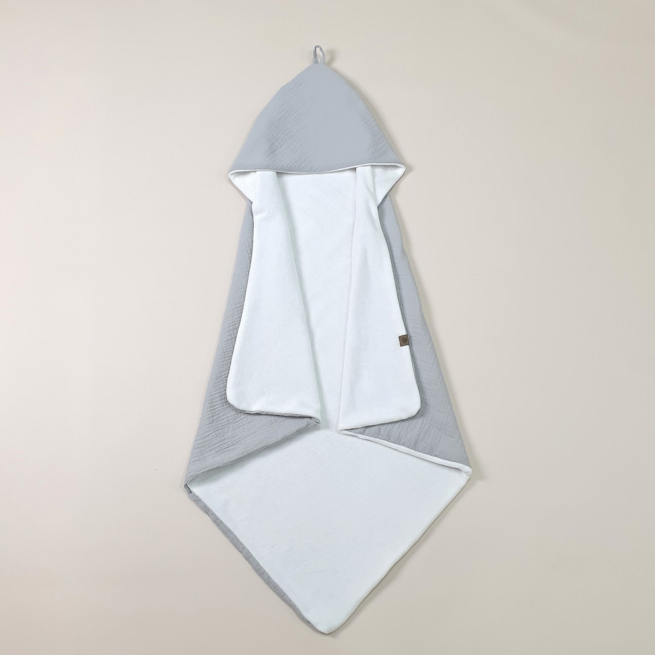 Имеет капюшон, необходимый для детского полотенца.