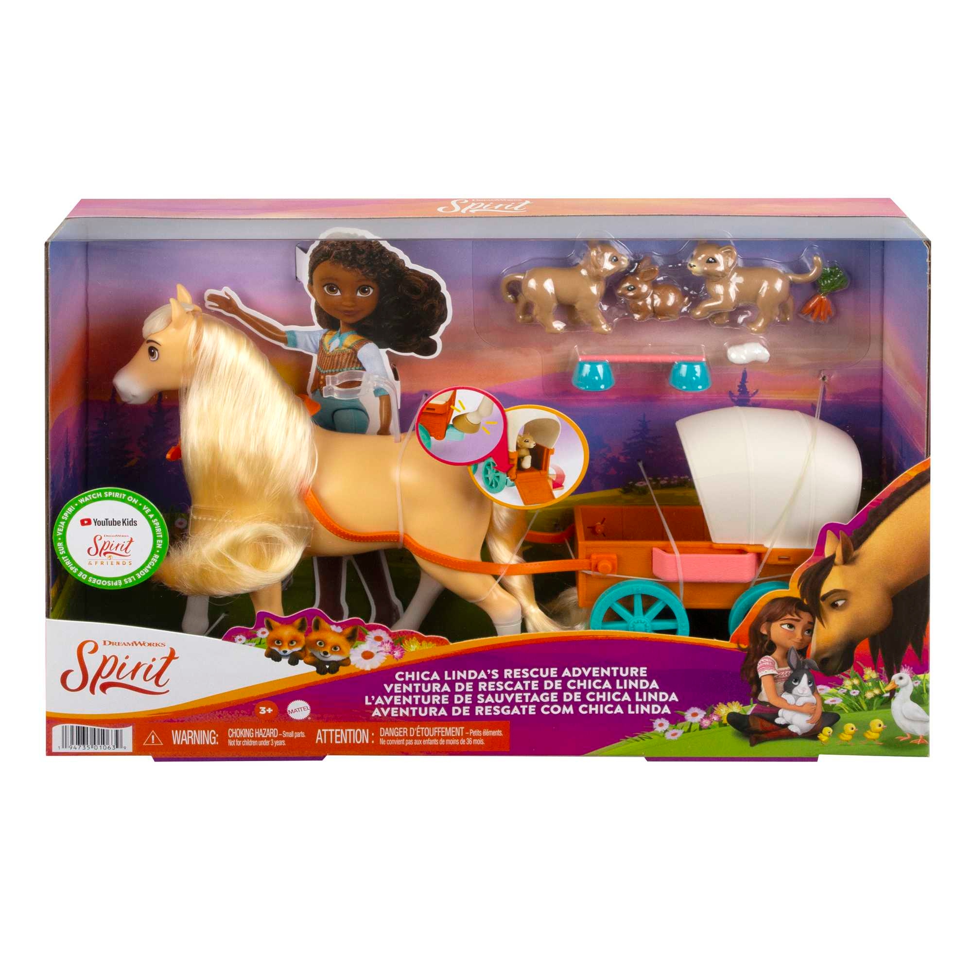 Присоединяйтесь к дружбе, смелости и приключениям вместе с Spirit Untamed от DreamWorks! Испытайте дружбу, смелость и приключения с персонажем мультфильма Спирит из DreamWorks. Spirit Kids могут весело рассказывать истории вместе с Чикой Линдой! С помощью грузовика для спасения животных «Чика» Линда возвращает детеныша горного льва его благодарной матери. В этот захватывающий набор входит лошадь Чика Линда (20 см) с красивой пышной гривой и хвостом и шарнирной головой для позирования. В этот набор также входит симпатичная маленькая тележка, в которую можно таскать и помещать маленьких домашних животных. В комплект также входят 2 маленькие фигурки пумы, фигурка маленького кролика, морковное лакомство и физиотерапевтический аксессуар. Отличный подарок для детей от 3 лет и старше, особенно для тех, кто любит лошадей, животных и приключения!
