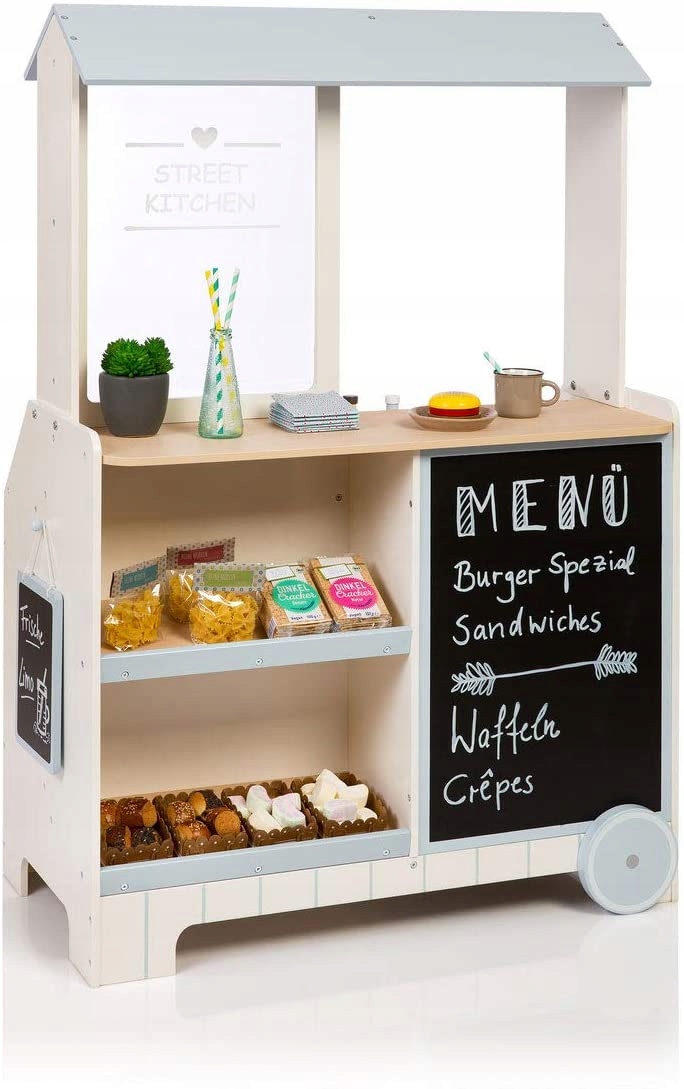 С этого момента вам не нужно выбирать между кухней для детей и магазином - этот продукт просто предлагает оба в одном. А на фронте вы можете представить и продавать товары.