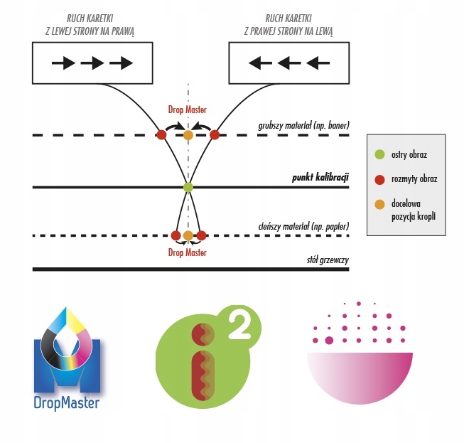DropMaster устраняет эту проблему и необходимость ручной калибровки. Автоматически регулирует способ выброса отдельных капель чернил для попадания в цель как при односторонней, так и при двусторонней печати независимо от материала, разрешения и скорости!