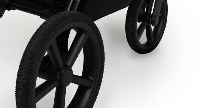Передние колеса диаметром 8", задние 11,5", из устойчивого к проколам пенопласта; обеспечить стабильность и плавность вождения без необходимости накачивания. Коляска Muuvo Go с большими колесами позволит вам комфортно скользить по поверхности земли – независимо от местности, по которой вы ступаете.