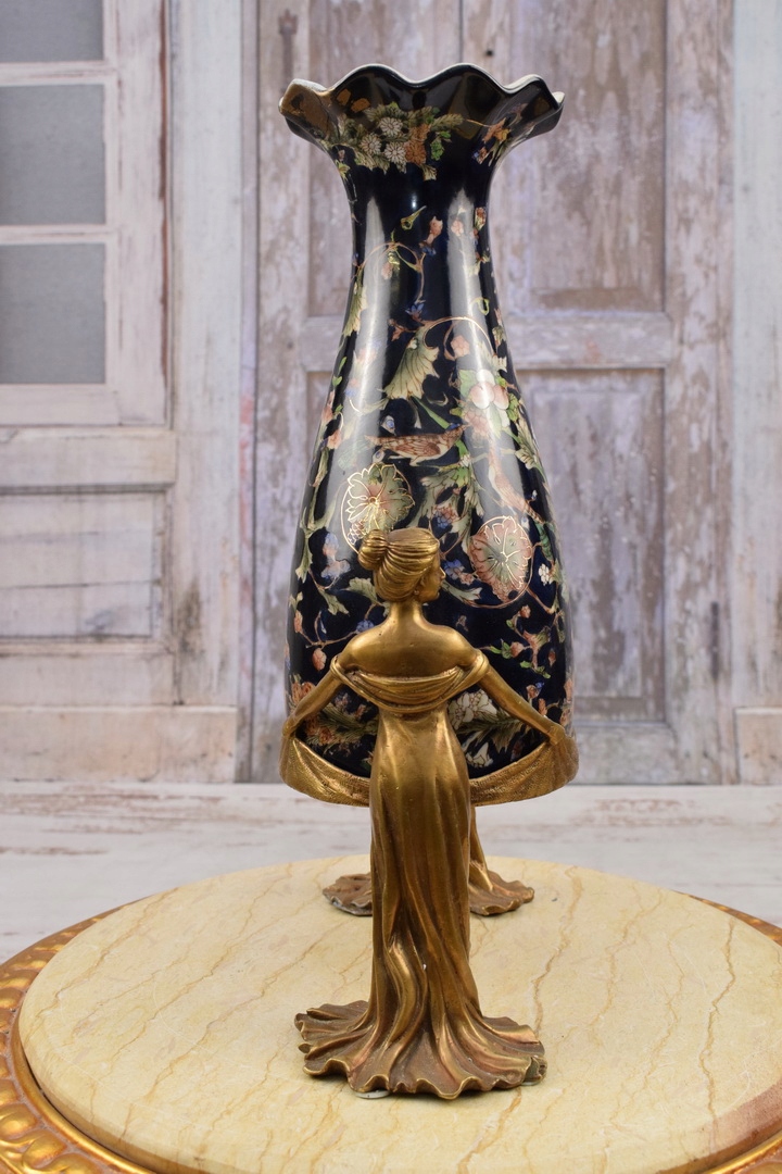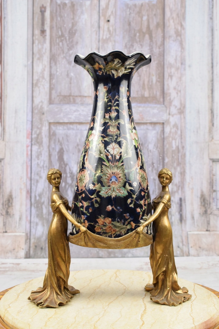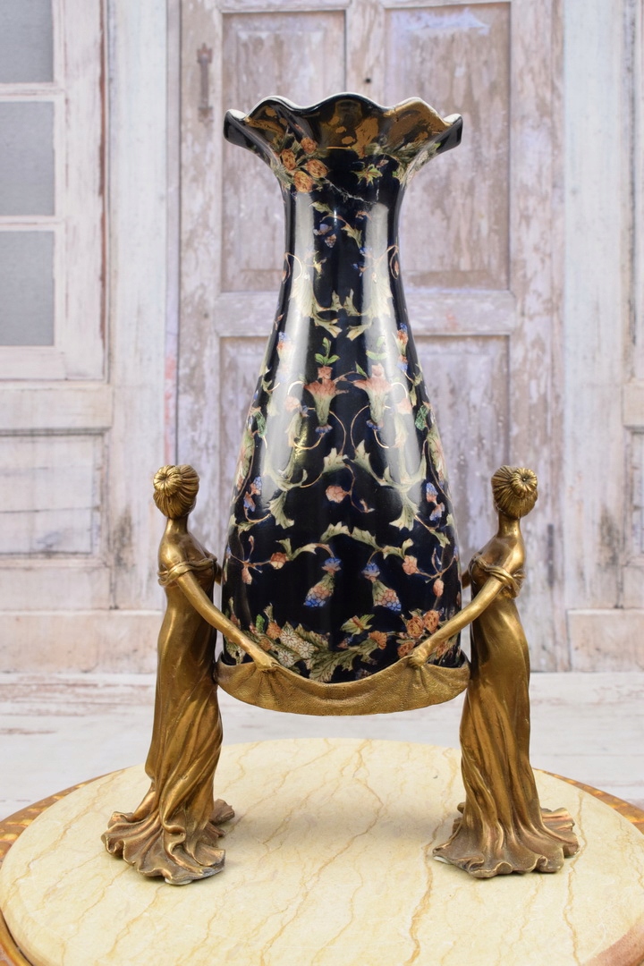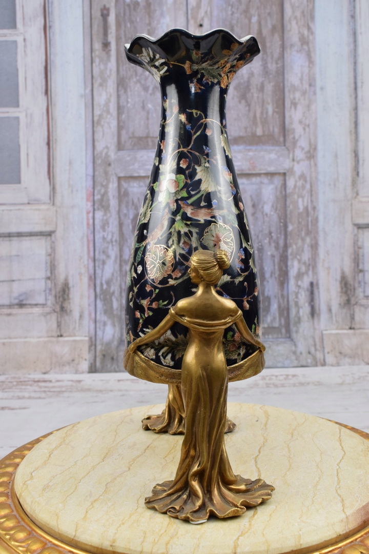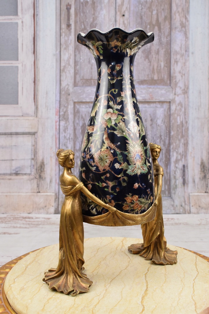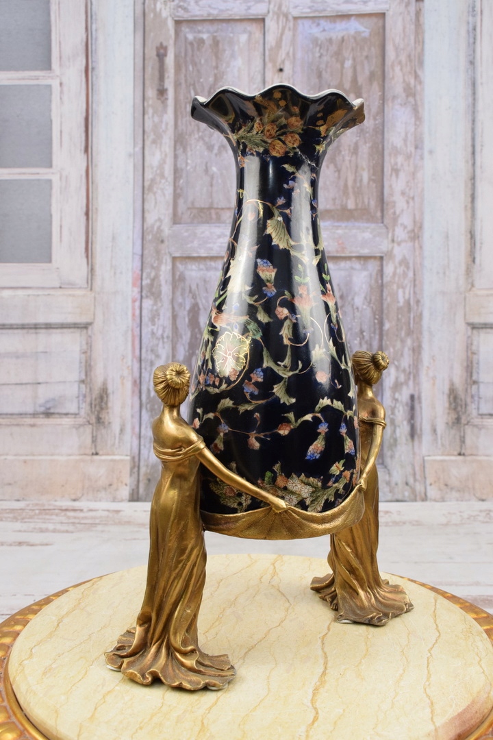 Музейна чорна ваза - німфи, що тримають вазу - порцеляна + бронза