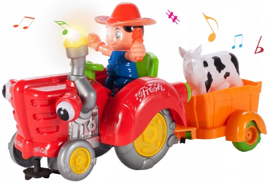 МУЗИЧНА ФЕРМА ІГРАШКА ФЕРМЕРСЬКИЙ ТРАКТОР З ПРИЧЕПОМ ЇДЕ СПІВАЄ ВГНІ