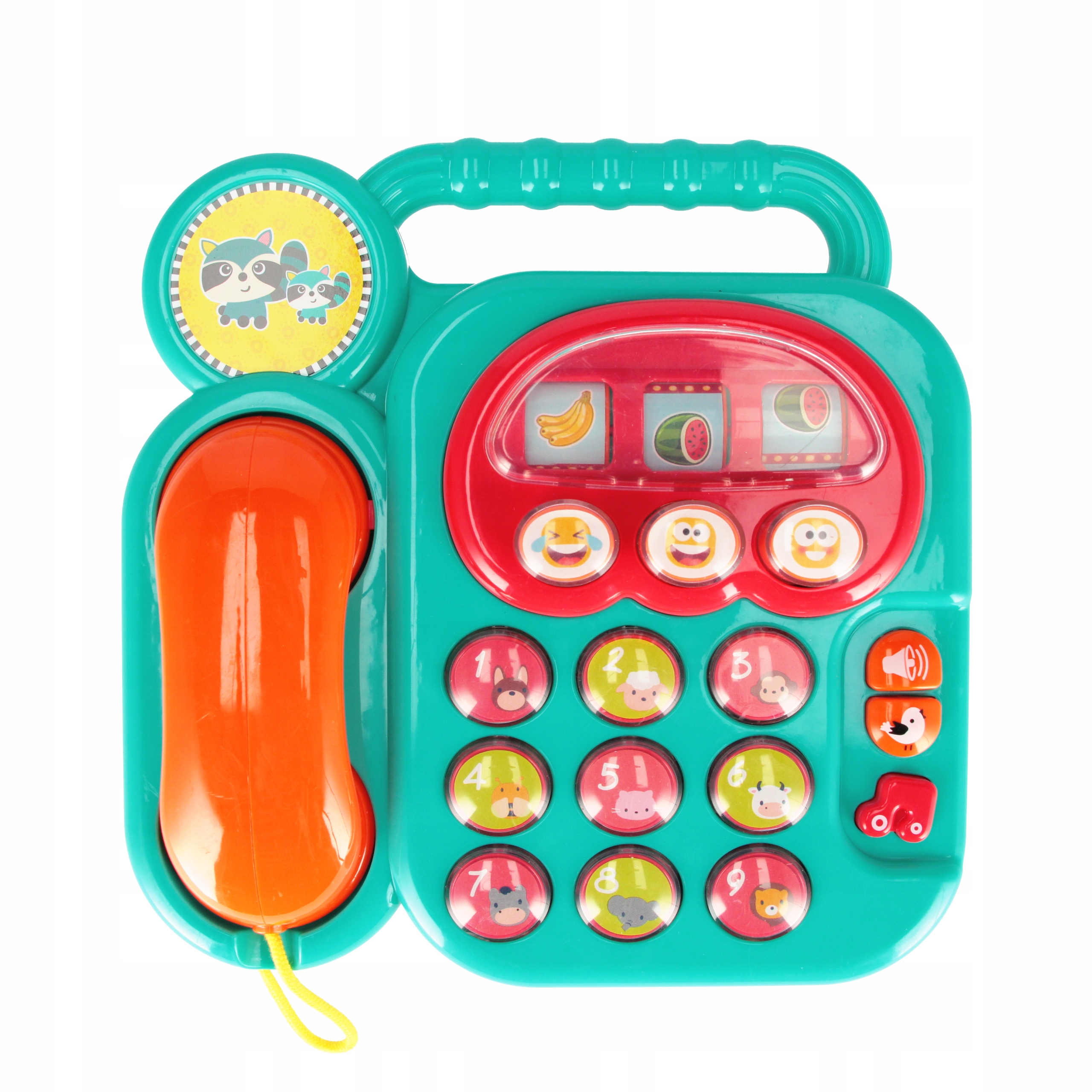 Нажав одну из красочных кнопок, вы можете услышать цифры, звуки, мелодии и мелодии звонка, которые вовлекут ребенка в воображаемый разговор через телефон.