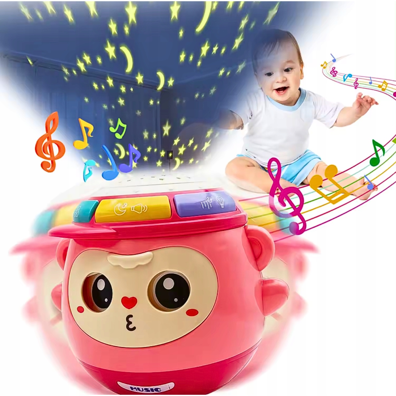 Музыкальная обезьянка — очаровательная интерактивная игрушка, которая не только развлекает, но и развивает познавательные способности вашего ребенка. и сенсорные навыки ребенка. Одна из замечательных особенностей этой обезьяны – способность открывать и закрывать глаза, связанная с ее покачивающимися движениями.