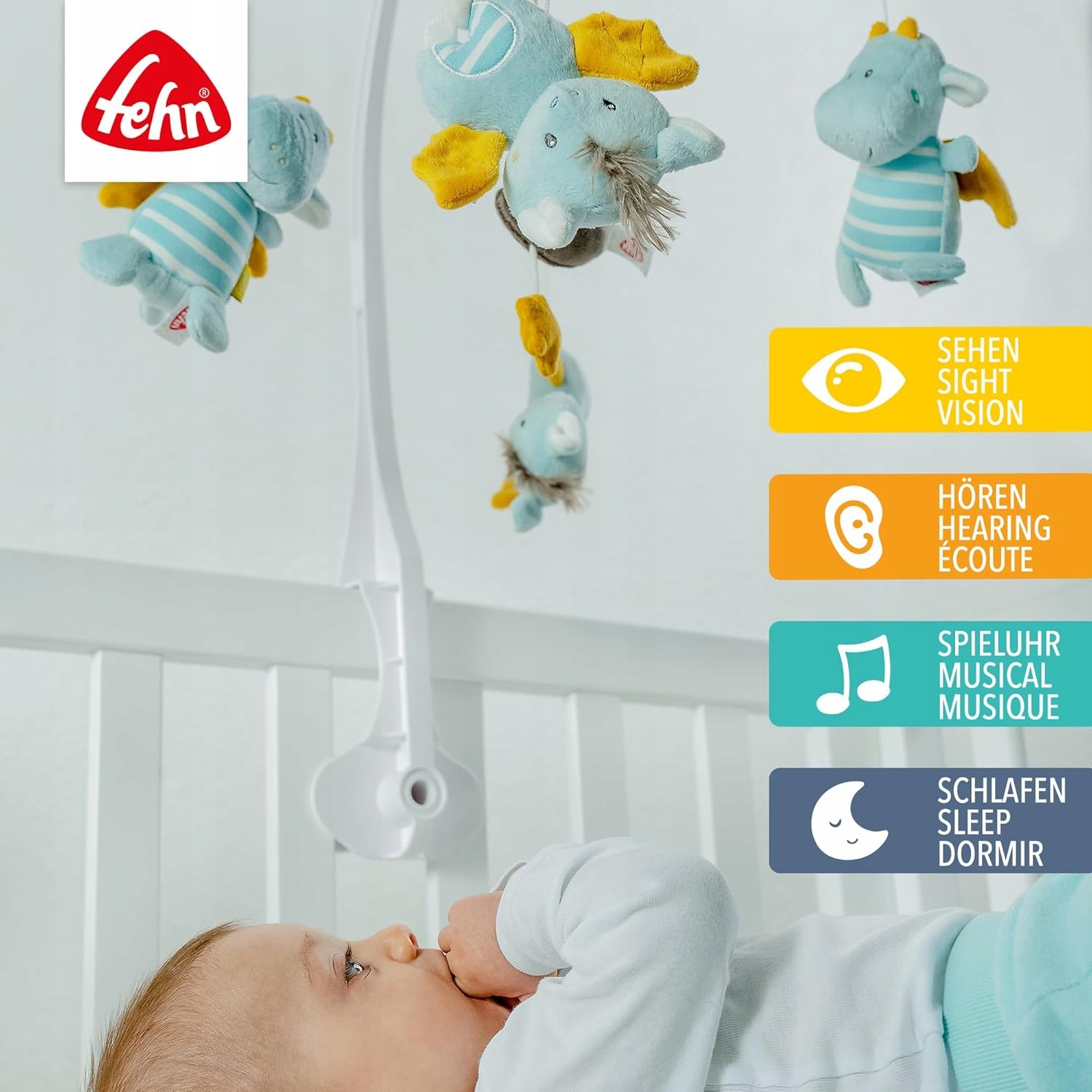 Музыкальная шкатулка играет успокаивающую мелодию, которая помогает ребенку успокоиться и быстрее заснуть 🌙🎶. Подвижные элементы привлекают внимание, способствуя развитию концентрации и зрительной координации ✨👶.
