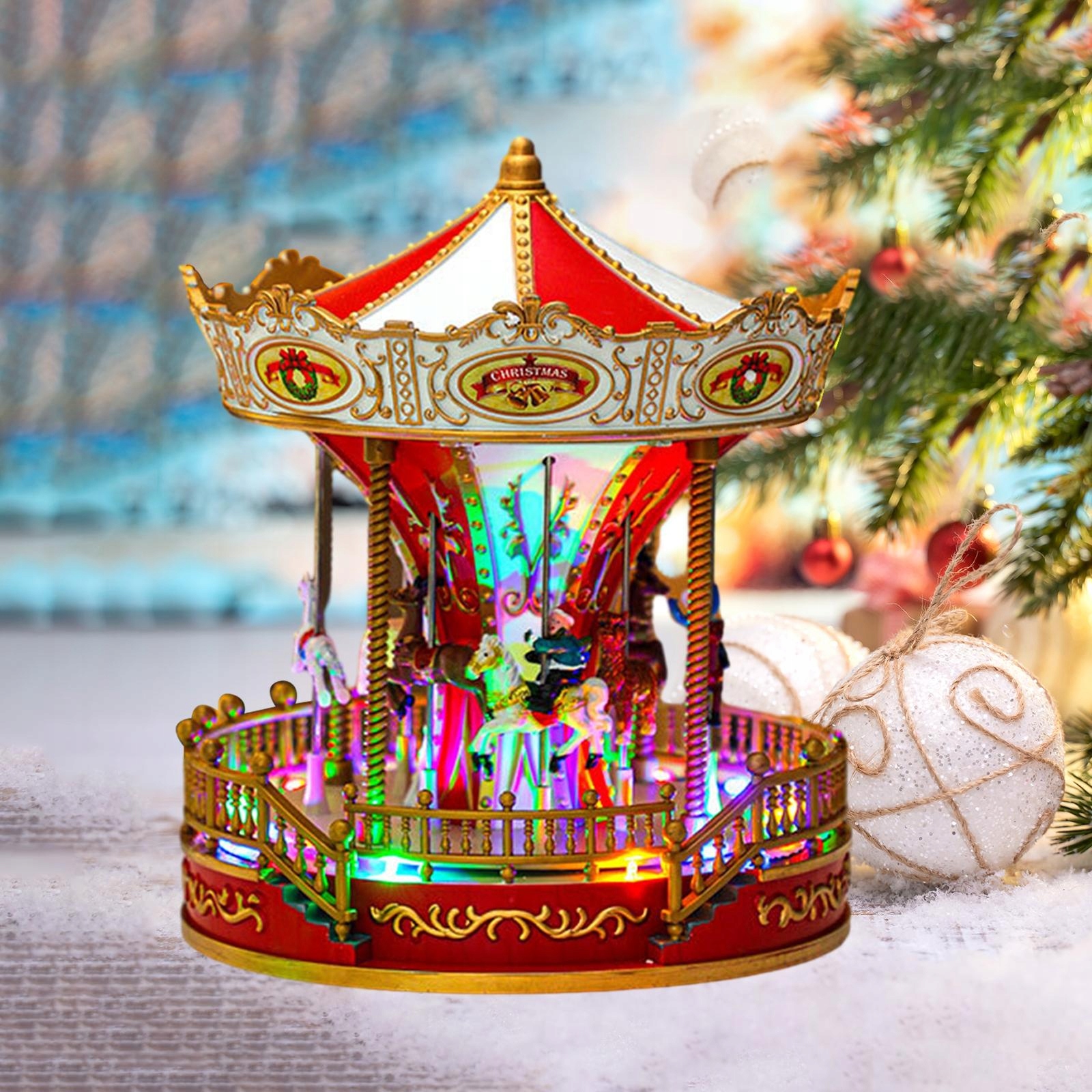 [Функция музыки и света]: музыкальная шкатулка со светодиодной каруселью и яркими огнями создает теплую праздничную атмосферу Рождества.