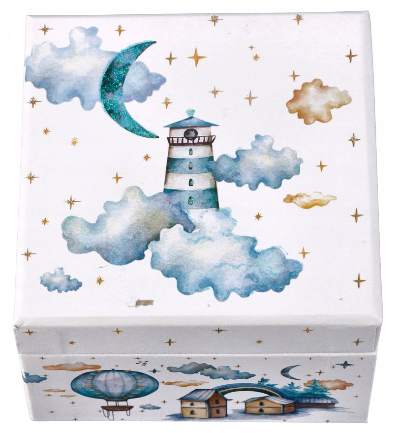 Представляем новую серию музыкальных шкатулок, конечно же от Adam Toys. Красивая шкатулка для безделушек станет прекрасным дополнением в каждом уголке, как девчачьего, так и мальчишеского. На этот раз это музыкальная шкатулка на тему страны грез — по бокам ее вы найдете облака, луну и маяк. Дополнением является небольшая деревня и воздушный шар, на заднем плане которого видны мерцающие звезды. Луна, украшенная переливающимися зелено-голубыми блестками, придает музыкальной шкатулке нежный, но не чрезмерный блеск, что делает ее прекрасным дополнением комнаты маленькой принцессы или юного художника. А может, в этой шкатулке вы найдете еще безделушки? Посмотрите внимательно и вы обязательно его найдете :)