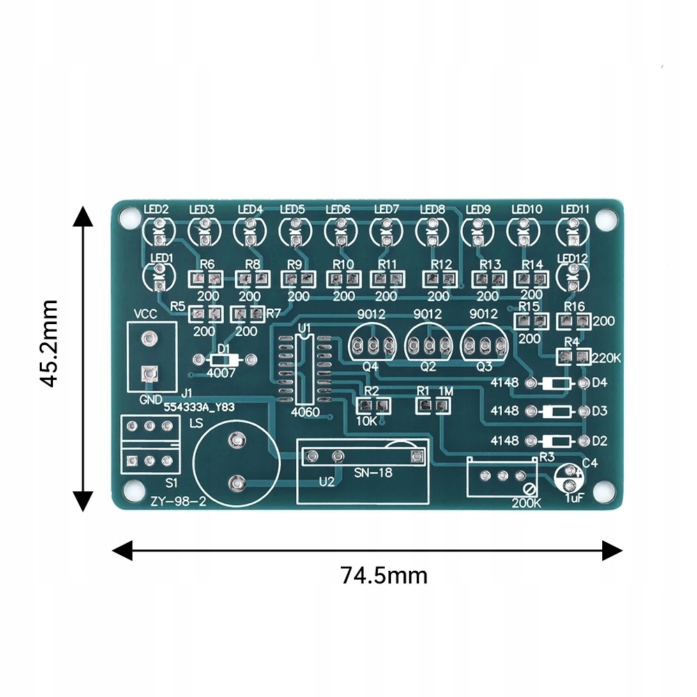 Размер печатной платы: 75мм х 45мм