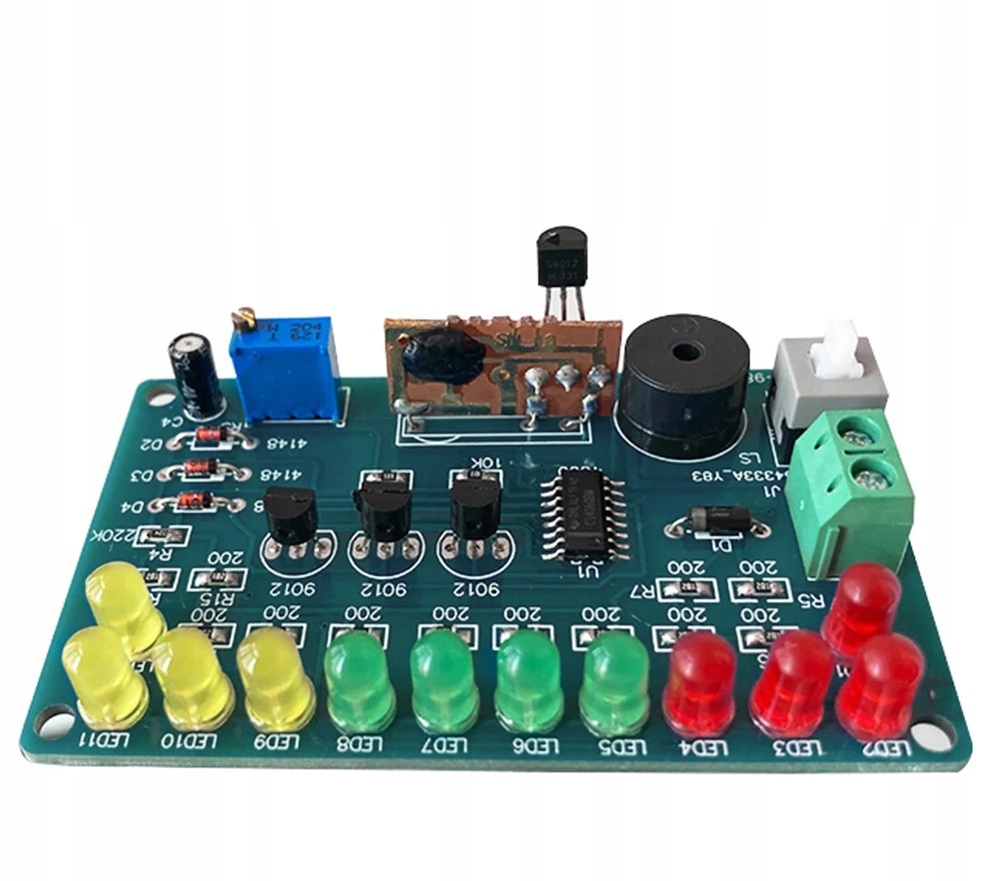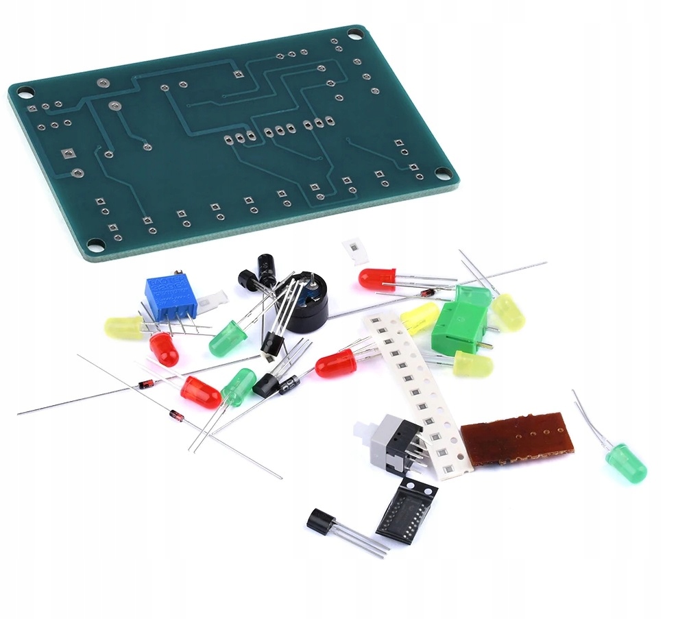 Схема сборки системы напечатана на доске. Необходимо обратить внимание на полярность в случае таких элементов, как конденсаторы, диоды, транзисторы. В случае со светодиодами более длинная ножка – это плюс +, у большинства элементов свои параметры описаны на корпусе. Резисторы могут иметь полосовую маркировку; их сопротивление и допуск можно прочитать с помощью калькуляторов, доступных в Интернете, или измерить с помощью мультиметра. Порядок сборки обычно произвольный, в зависимости от планировки, сначала собираем самые мелкие элементы.