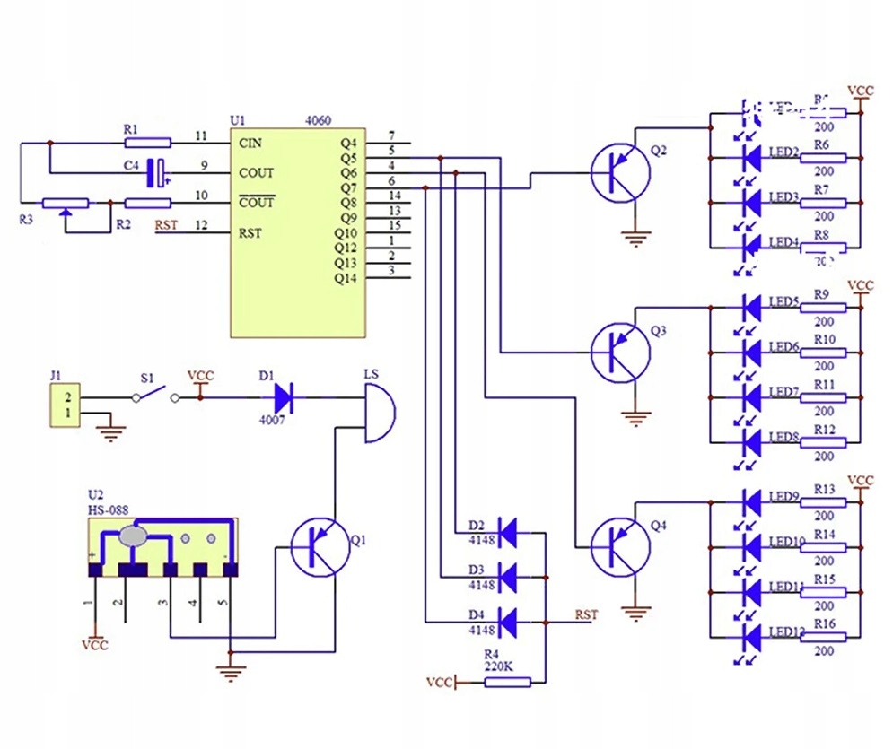 Модуль основан на системе управления CD4060.