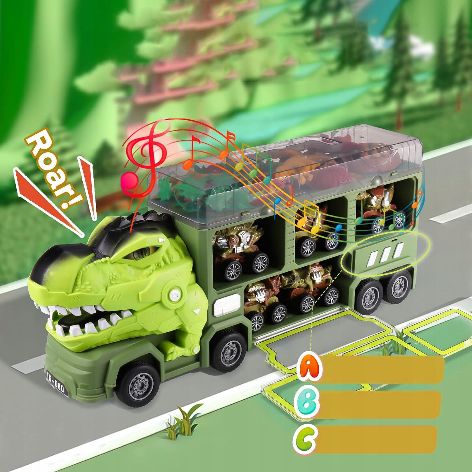Музыкальный грузовик динозавра со светом и ролями