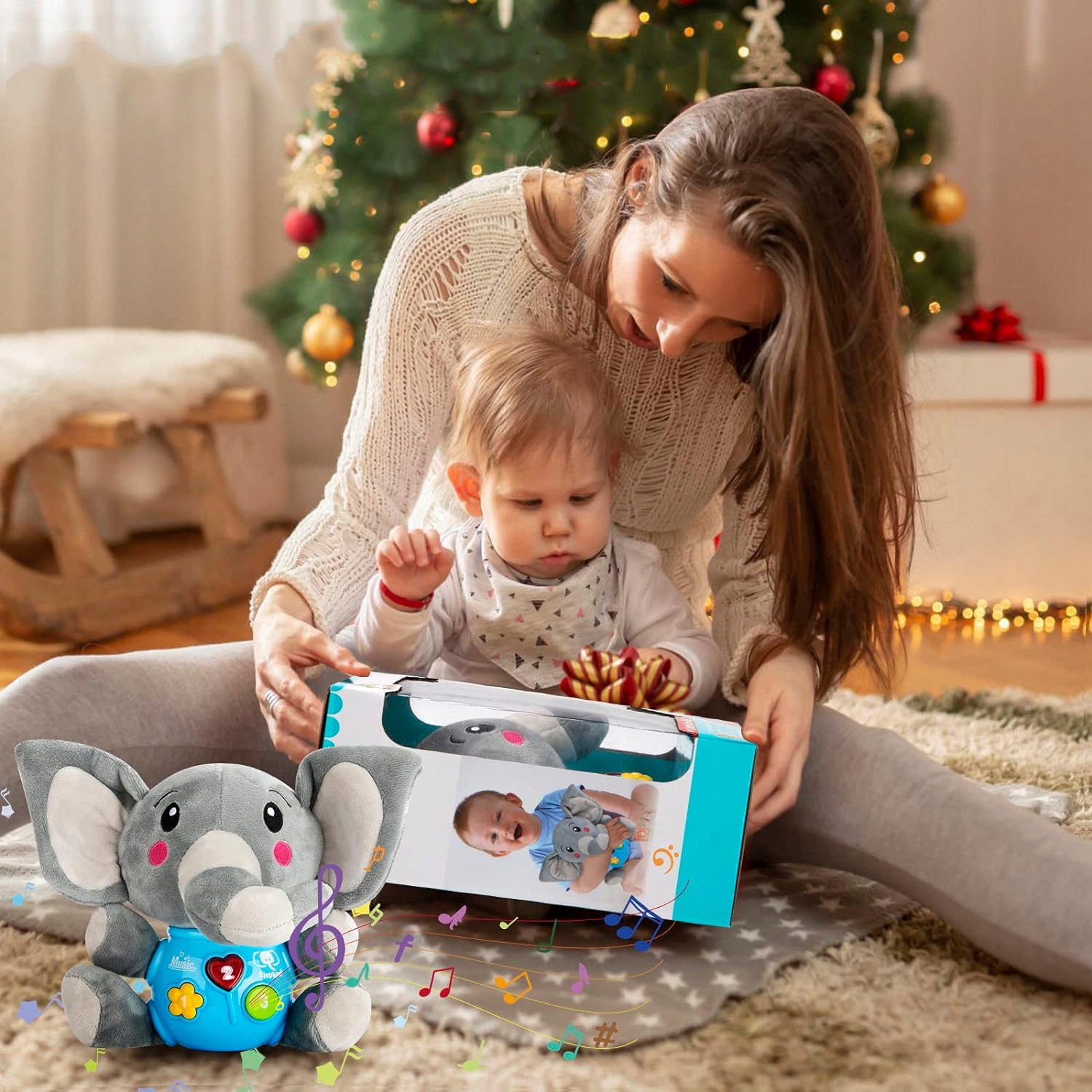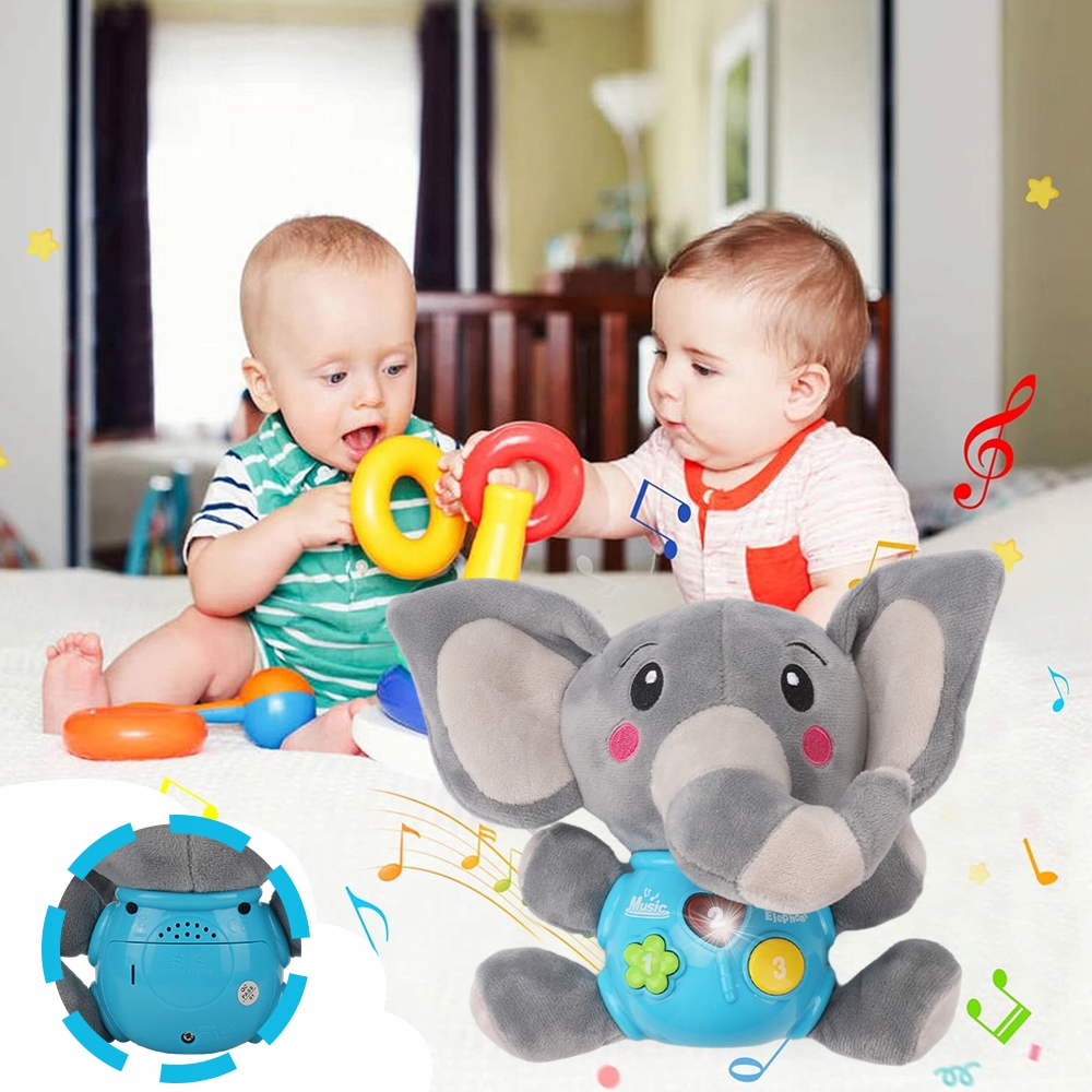 🎶🎶 Музыкальные плюшевые игрушки для малышей: Это милые плюшевые музыкальные игрушки-слоны для детей. 3-6 месяцев. Детские музыкальные игрушки-слоны воспроизводят 12 детских песенок, звуки природы и забавные звуки. Если потрясти слона, малыши засмеются.