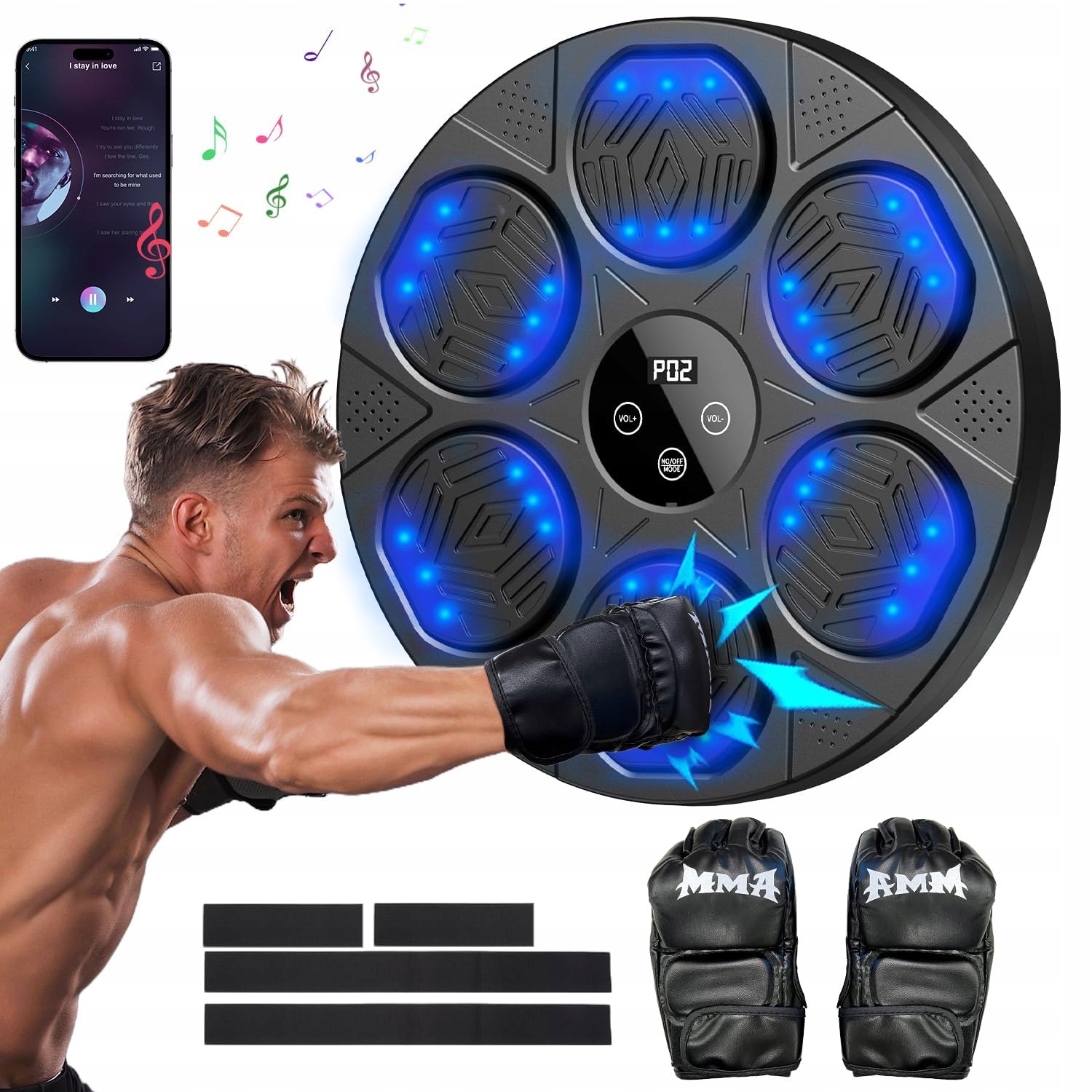 МУЗЫКАЛЬНЫЙ БОКСЕРСКИЙ ЩИТ со светодиодной подсветкой BLUETOOTH МУЗЫКАЛЬНЫЙ БОКС-МАШИНА + ПЕРЧАТКИ