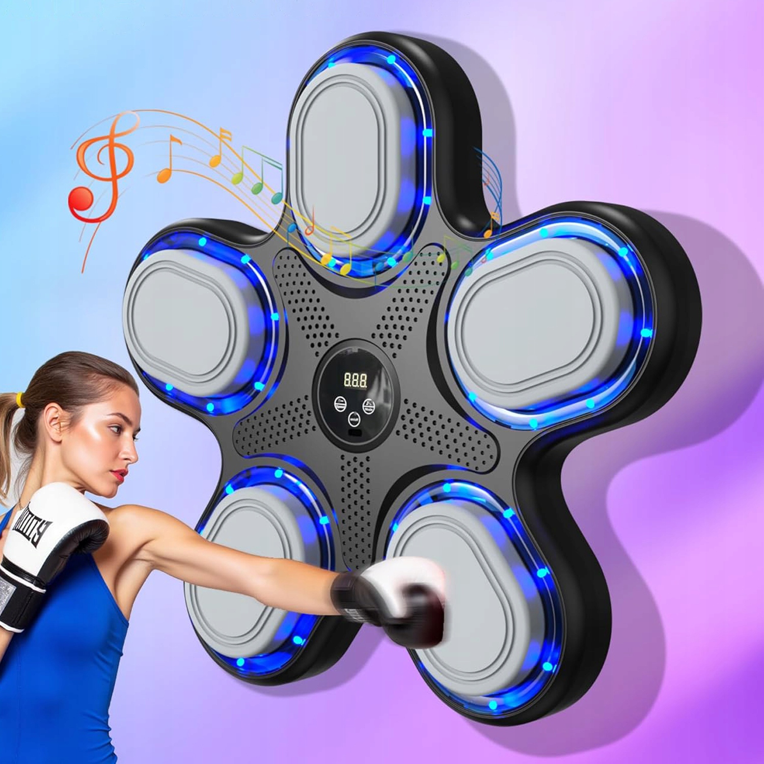 🥊 Boxing Machine с эффектами светодиодного освещения, 9 скоростей, монтаж на стену, воспроизведение музыки от Bluetooth b>.
