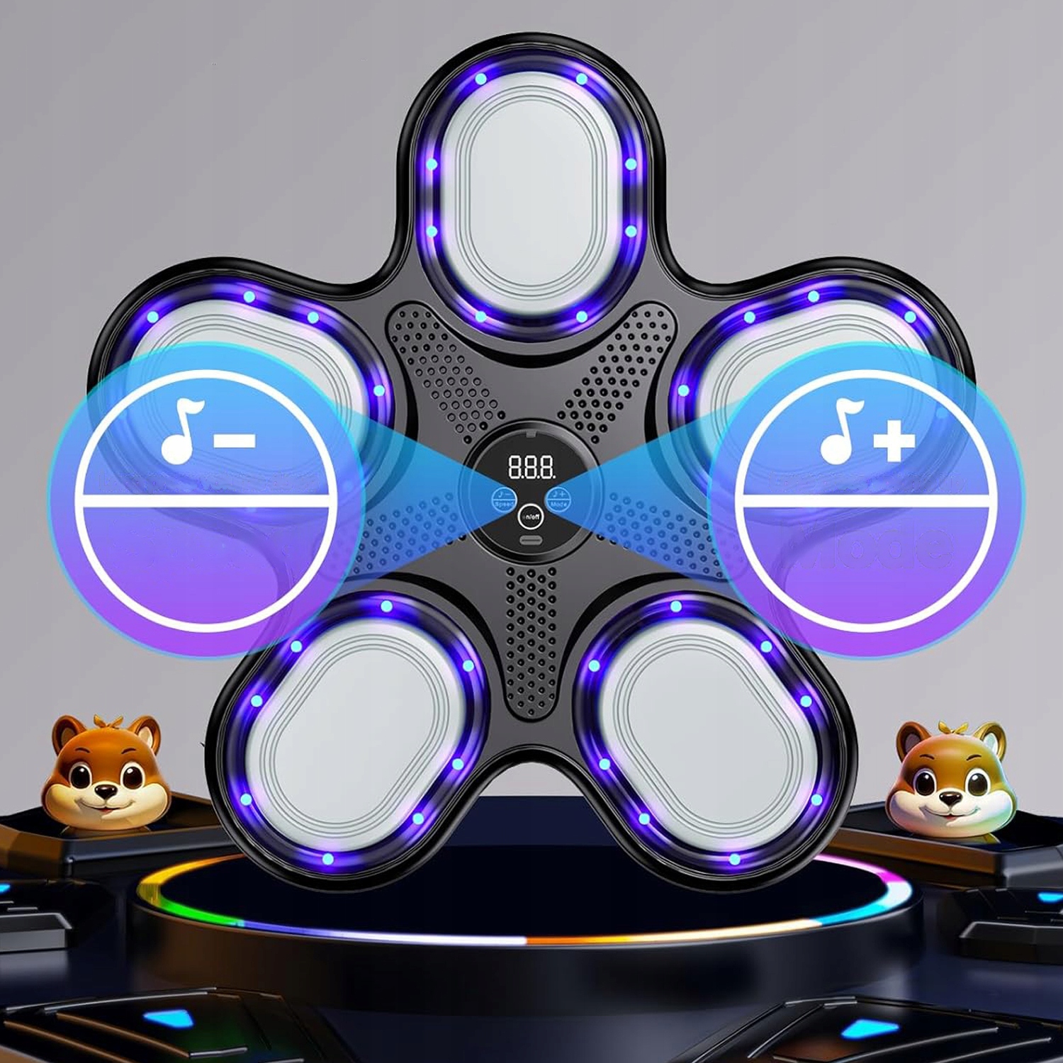 Интеллектуальная панель управления может отрегулировать скорость прыжкового света с уровня 1 до уровня 9. Вы можете настроить шаблон изменения света со скоростью удара. Чем больше передач, тем больше скорость, которая служит для повышения координации ловкости и глаз.