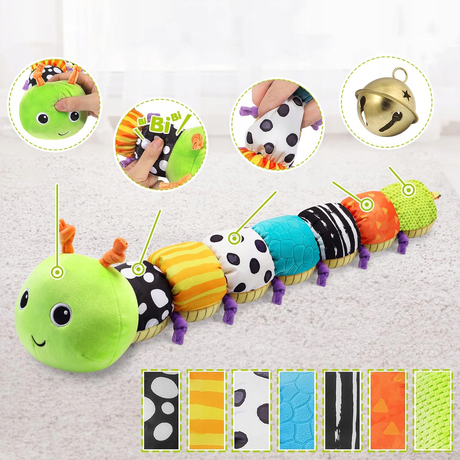 👶👶Детская игрушка.Материал этой плюшевой игрушки очень мягкий, приятный для кожи и хорошо отскакивает. Нажатие на голову издает приятную музыку, первая часть тела издает «хруст», третья и шестая части издают «шорох», а хвост издает колокольный звук. Дети могут практиковать осязание, зрение и слух.