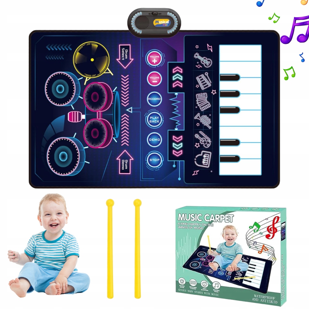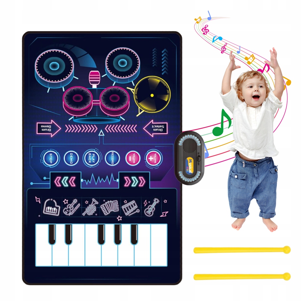 МУЗИЧНИЙ Килимок 80x50 СМ ІНТЕРАКТИВНЕ ПІАНІНО БАРАБАН ЗАПИС ЗВУКУ ГРА