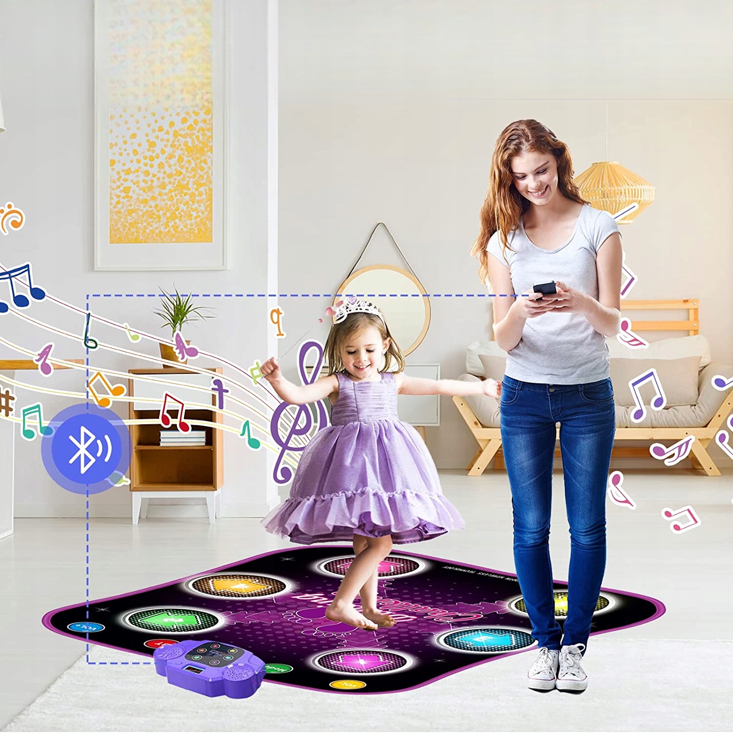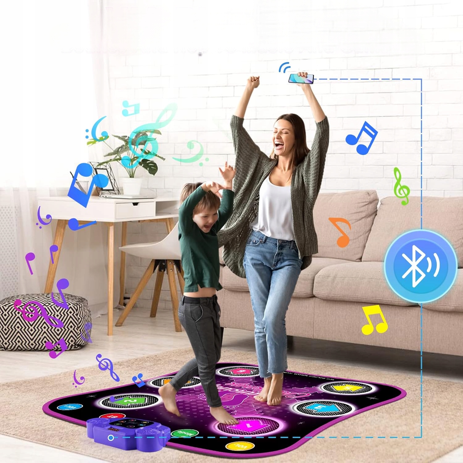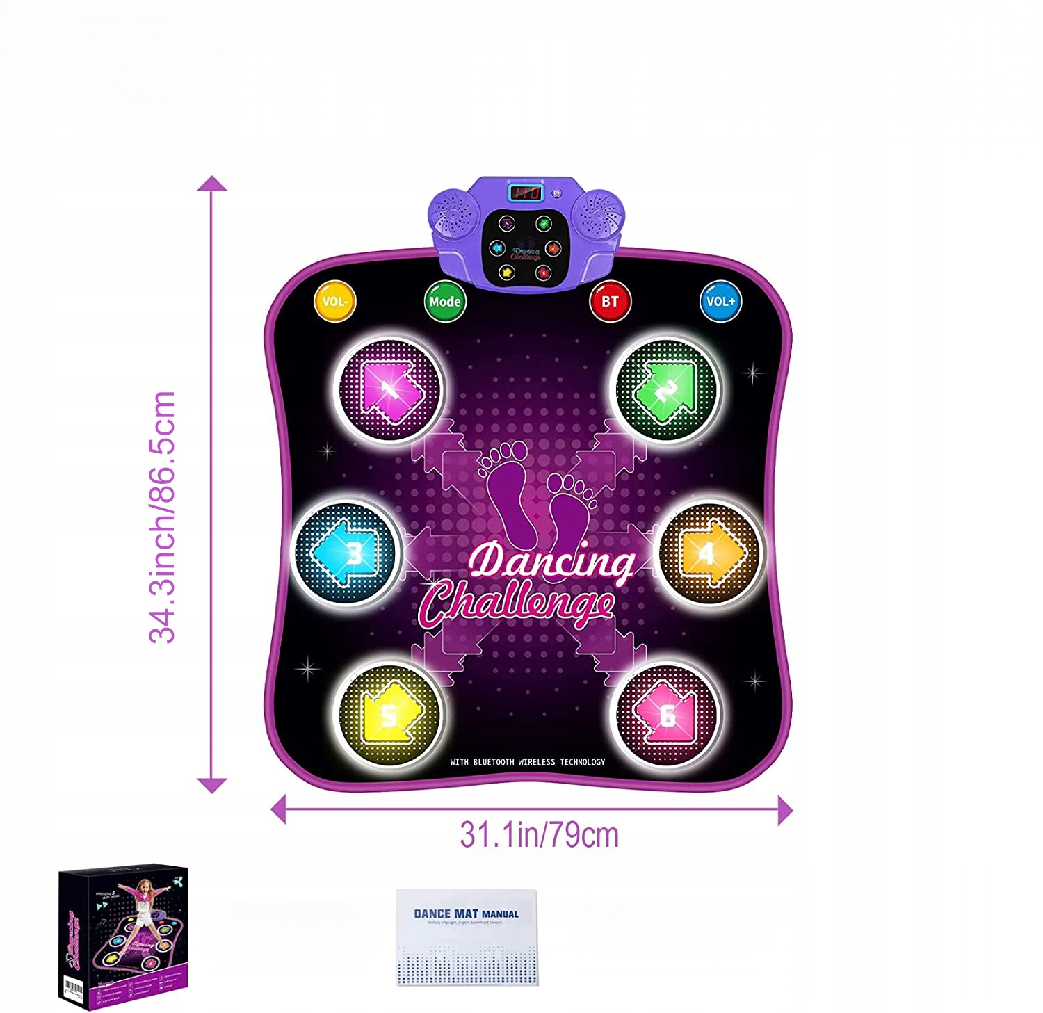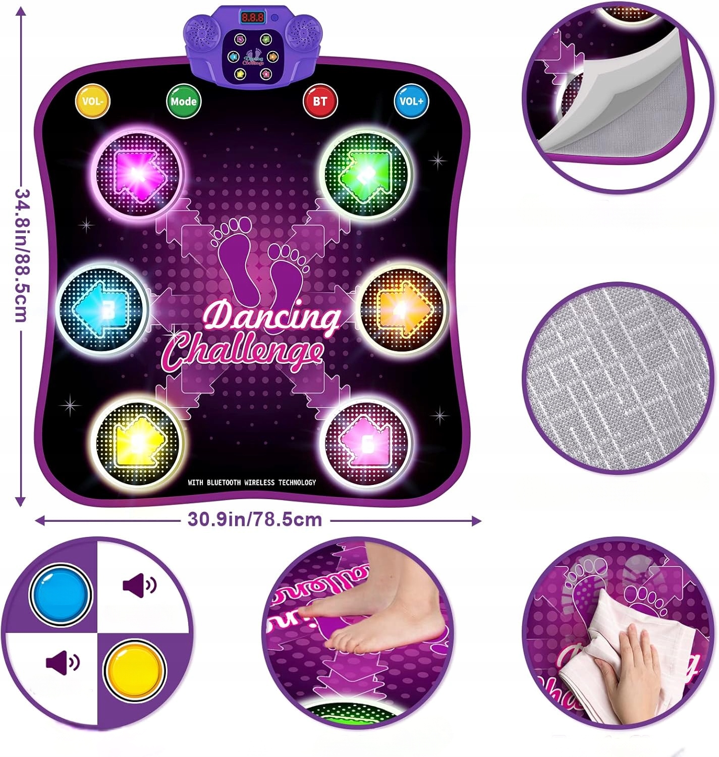 - Танцевальный коврик для привыкания обеспечивает функцию Bluetooth с кнопкой, подключается к вашим любимым песням и никогда не становится скучно! Давайте танцевать по желанию! Ритм музыки к ритму освещенных узоров. Дети могут свободно переключаться между 5 трудными режимами