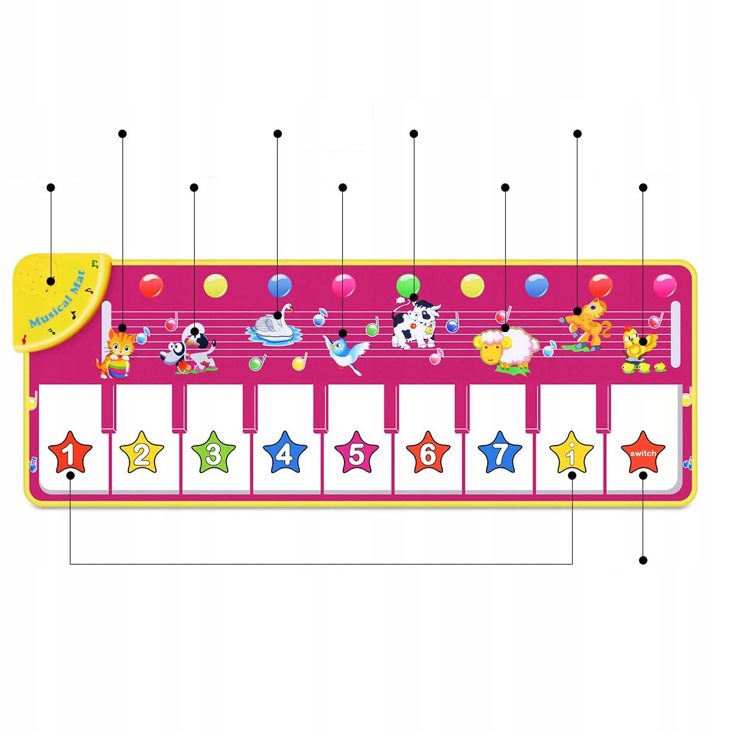 🎶 【Многофункциональный коврик для фортепиано】: этот детский коврик для фортепиано имеет 9 клавиш фортепиано и 8 звуков и артикуляций животных. Красочные плитки на клавиатуре помогают детям распознавать цвета, животных и клавиши фортепиано. Стимулируйте координацию рук и ног детей.